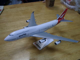 | JALの機内でもらった子ども向けおもちゃ | 祖父母からのお土産にもらったQANTASの 模型 |