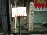 | 池田屋騒動の跡 現在はパチンコ屋になり、石碑と地面にプレートがあるのみ。 NHK大河ドラマのおかげで人気が上がり、説明板が設置されていた。 |