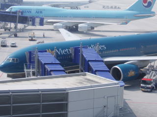 | 2005年2月開港の中部国際空港(セントレア)の送迎デッキからの眺め 05/7 ベトナム航空が駐機していた。 | ||