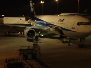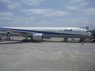 | YS−11の座席上部のスイッチとプロペラ | 旧エアニッポンの機体、B767−300ER 今は全日空の塗装になっていた。 |