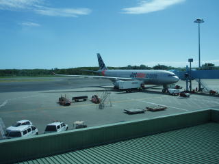| セントレアから撤退したカンタス航空が出資して、激安運賃を売り物に新規参入したJET☆航空。機種は、国際線にエアバスA330−202、オーストラリア国内線にはエアバスA320を使用している。 写真は、オーストラリアのケアンズで乗る前に撮影したもの。 |