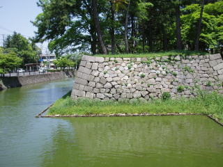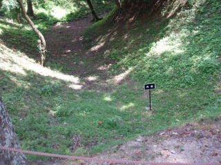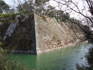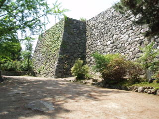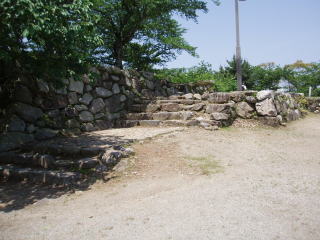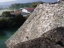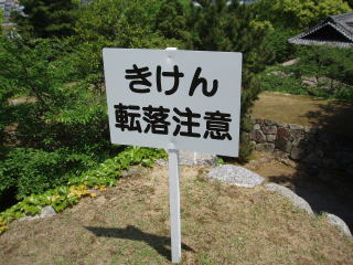 石積みはかなりの高さがあるが、柵等はなく、「きけん 転落注意」の立て札しかない。従って、上から覗いてみると非常に恐怖である。 三重県の城跡は、伊賀上野城を始めとして高い石積みが残っているが、転落防止の柵がほとんどないので注意を要する。 |