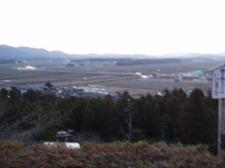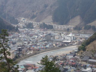 町から百数十メートル、海抜約三百メートルの山の頂上にあるので、眺めは良い。 吉田川とその向こうに東海北陸自動車道が見える。 |