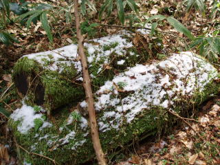 ふもとの駐車場から、本丸跡まで700m〜800mだが、山道の途中には消え残った雪がちらほら。 | ||||