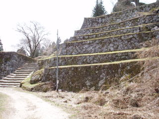 | 岩村城跡 岐阜県恵那市岩村町にある山城。起源は平安末まで遡るが、戦国時代武田と織田が争った当時、城主が女であったことから、女城主の城として有名。日本三大山城の一つで、標高721mにある岩村城は日本で一番高い所にある。 建物は、太鼓櫓と藩校の建物が再建されているだけで、広大な山には石積みと井戸だけが残されている。(’06年4月) 目次へ |