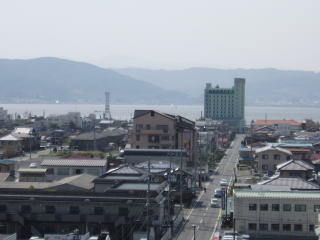 高島城 長野県諏訪市にある。外見は木造風だが、内部は鉄筋コンクリート造りである。再建された天守閣以外には門と堀の一部がある。 往時は、この城から諏訪湖へ船が出せたそうだが、今は湖面までかなり距離がある。 天守閣からは、諏訪湖が望める。(’06年5月) 目次へ |