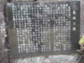 | 鳥羽城跡 三重県鳥羽市にあり、城山公園として整備されていて、鳥羽湾が一望できる。鳥羽水族館等がある鳥羽のメインストリートから、ちょっと裏へ入った町中にある。 三河から大坂城に使用するために持ってきた石の一部を使い、九鬼家が築城した。江戸時代には、九鬼家以外が城主となり、明治になって廃城となった。(’07年2月) 目次へ |