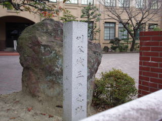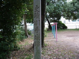 川手城跡 古くは革手城とも書いたらしい。済美高校の敷地の中?(あるいは隣接して)にあるが、遺構は何もなく、解説の看板と石碑だけがある。小さな公園になっているが、遊具は鉄棒と滑り台だけである。 目次へ |