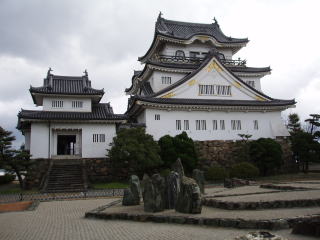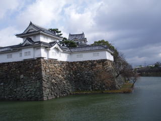 | 岸和田城 「だんじり」で有名な大阪府岸和田市にある。戦国時代、豊臣秀吉の命によって小出秀政が入城し、五重の天守閣を築くも、19世紀に落雷で焼失した。現在の模擬天守は、昭和29年にコンクリート造りで復興され、昭和44年に城壁と櫓が建てられた。 関西空港が近いので、最上階からは着陸間際の飛行機を眺めることができる。(’07年1月) 目次へ |