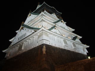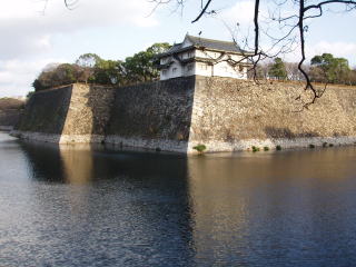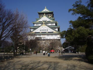 | 大坂城 大坂城と言えば、太閤秀吉が作ったものが有名だが、現在残っている城の遺構は、「大坂冬の陣」「大坂夏の陣」によって豊臣家が滅びた後、徳川家が西国大名に命じて作り直したものである。従って、豊臣家を偲ぶものはほとんどないと言ってもよい。 天守閣は、徳川家が作った後40年ほどで落雷によって焼失し、大坂府民の希望で再建されたのは昭和6年である。国内では、最初の鉄筋コンクリートの再建天守閣であり、エレベーターで一気に5Fまで案内される。 平成9年の大改修で化粧直しがされたので、金鯱や最上階の金のレリーフが光り輝いている。 文化財的価値のあるのは、門や櫓等であり、また城郭を支える石積みである。堀に面した石積みの高さは日本一の落差を誇る。(’07年1月) 目次へ |