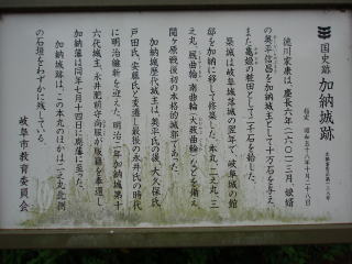 | 加納城跡 岐阜市の中心部からやや南に下った辺りにある加納城跡。現在は公園になっており、石積みと土累が残るだけで、建物は何もない。 目次へ |