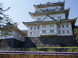 | 小田原城 秀吉が攻めたとき、北條家がなかなか態度を決しなかった「小田原評定」で有名な小田原城である。鉄筋コンクリート作りの天守閣があり、内部は資料館になっている。最初はもっと広大な敷地を持つ城だったらしいが、江戸時代に現在の原型になったらしい。 天守閣は昭和35年に再建された。外見は3層だが、内部は4階建てになっている。(’07年10月) 目次へ |