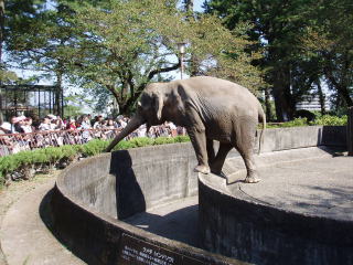 城跡公園には動物園もある。ゾウの梅子は60歳の還暦のお祝いだった。(’07年10月) | ||||