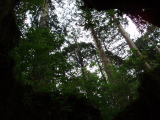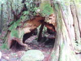 夫婦杉。二本の木の枝が融合してしまっている。「夫婦杉」という命名は仲睦まじいという意味なのだろうが、融合して離れられないなんてある意味ちょっと怖いかも!?(^^;)