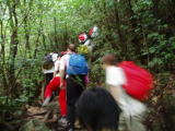 最初はトロッコ軌道をそのまま歩くので、迷うこともなく、他に大勢の人がいるので不安もない。また、ガイド付きのグループは、ガイドが時々止まっては植物等の説明をしているので、ちらちらと見ながら、追い越して先へ進む。