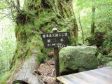 こうした、有名木を見ながら歩く道中雨は降ったりやんだりが続くので、そのままカッパの上着だけでいたのだが、11:15いよいよ縄文杉を目の前にして、雷鳴とともに豪雨になってしまった。