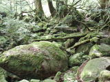 七本杉からしばらく行くと、「もののけ姫の森」と名付けられた場所にたどり着く。誰もがここで一休みし、記念写真を撮っていたが、このような風景はここに限らず、あちこちに見られる。いわば、屋久島の森全体が”もののけの森”のようなものである。