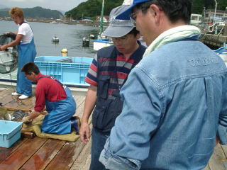 同行者 私の家族 左近さん、ケンケンさんとその家族、ずみさん。 辨屋二回目。夏休みなので、家族連れで参加した。 1回目の放流までアタリのない状態だった。また、2回目の放流後、青物が2〜3本上がった後も、アタリが遠のいた。 暑くて魚も夏バテ、食いが悪いらしい。 アタリエサは タイ、イサキ−甘エビ、生ミック、アオイソメ 青物−冷凍イワシ、活きアジ タイとイサキはほとんど息子が釣った。 |
