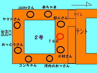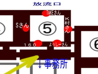 | 釣魚好人さんが幹事をされている三重釣り歩き会の、お花見釣行会に参加させていただいた。 当初、単独で往復のつもりであったが、直前になりマナブンさんが参加されることになった。マナブンさんから、乗せていってあげるというありがたいお話があり、便乗させていただくことになった。やったー(^o^)楽ちん釣行である〜。 当日は、午前3時に自宅へ迎えに来ていただいた。 名二環、伊勢湾岸、東名阪、伊勢道と高速を使って、2時間ほどで玉城のインターを降りることができた。 エサ屋で、ボケとカニだけを買った。シラサと青イソメは、マナブンさんがあらかじめ買ってあるということで、買うのはやめた。また、活アジは、持ち運びが面倒なので、傳八屋で買うことにした。 サークルKに寄って食料を調達した後、牧野さんの所へ寄り、魚かしのエサを一つ買った。釣り会の皆さんへということで、カツオのぶつ切りをサービスでもらい、私も一ついただいた。 その後も順調に行き、傳八に着いた。駐車場が結構空いている。土曜日にしては少なめである。 まあ、気候が不順だから仕方がないのかもしれない。桜は一応咲いたが、気温は低くまだ1℃ー10℃程度なのである。2月末から3月上旬の気候だと、天気情報で言っていた。 おまけに、3日には暴風が吹いたり、その他の日も強風や不意の雨など、条件はよくない日が続いている。年によっては、もう5月の気候だとか、夏日だとかいうこともある時期なのに・・・ それで、私の服装も冬の釣行そのままであった。それで、汗をかくこともなく、ちょうどいいくらいなのだから、魚の活性が悪いのも仕方がないし、お客さんが少ないのも仕方がないのかもしれない。 傳八屋の事務所で、好人さんその他の方とご挨拶をし、釣り座のくじを引いた。結果、以下の場所になった。 ![]() Jackyさんとマナブンさん以外は、初対面の方ばかりで、名前がないが、ご容赦いただきたい。 さて、貸し切りなのでスタートはいつものように一斉である。準備の時間に、棚を測り、通常の竿以外にイカダ竿も準備した。 そして7時20分にスタート。しかし、全く反応はない・・・(-_-;) サツキマスが表層を群れで泳ぎ回っているが、当然食い気は全くない。底にエサを送り込むがそこにも食い気のある魚はいないようだ。 30分くらいして、マナブンさんが1匹タイを釣り上げたが、1回目の放流まで12号のイカダ全体で上がった魚はこれ1匹だったような・・・(-_-;) 当然、私もノーバイト、ノーフィッシュである。ウキはピクリともしない。 8時20分頃に、1回目の放流船がやってきた。小物がたくさん放り込まれる。 すぐには結果が出なかったが、しばらくすると私のウキに待望のアタリ。黄色ササミのエサでタイが釣れた。 すぐに次を狙うと、アタリがありながらも、途中で止まってしまったり、充分ウキが沈んだのに素バリ・・・(-_-;)というのもあったが、2匹を追加した。 でも、計3匹でストップしてしまった。 静かになった頃、Jackyさんの青宣言。活アジで食わせたようだ。やりとりを見ていると、9kgクラスのブリが上がってきた。 それで、青物の活性が上がったのか、他の人にもぽつりぽつりと散発的に青がアタリ、イカダ全体でブリ2カンパチ1が上がった。当然、私もその流れに乗り遅れないようにと、活アジで狙ったのだが、まったく素通りであった。 途中でカツオの切り身に交換してみたりしたが、反応が無いのは同様であった。う〜ん・・・(-_-;) しかたなく、小物仕掛けに交換したりしながら、結果を出せないうちに2回目の放流船がやってきた。 青物少々、小物がそこそこ、また追加され、最後にイシダイが放り込まれた。 イカダの皆さんが、青物を一斉に狙うが、沈黙のまま時間が過ぎる。そのまま、青物ラッシュはないままであった。ラッシュどころか、誰からも「青です」という声が出なかった。 私は、活アジ、カツオとエサを変えながらやってみるが、無反応。かろうじてカツオのエサをつつくタイのアタリがあったが、大きな切り身なので、食い込まず・・・ 天候は、時折風が強く吹き、パラパラと雨が落ちてくるといった、少々荒れ模様の日だった。 気温は上がることはなく、冬と同じ装いでも暑さを感じることもなかった。きっと、水温も低いままなのであろう。 あきらめて、イカダ竿に持ち替えて、コーナーを探ることにした。 黄色と赤の混じった魚かしの四角いエサを落としていくと、5.5m付近でコンコンとしたアタリ。すかかず合わせるが、早すぎたのか途中で外れてしまった。 そこで、エサをシラサに替えた。コンコンと同じアタリが。でもこんどはゆっくりと、待って待って、穂先が引き込まれるまで待ってから合わせると手応えがあり、イサキが上がってきた。 すかさず次も、じっくりと食わせて合わせると、今度はタイが釣れた。 その頃だったか、マナブンさんが青コール。そんなに大きくないと言いながら、ワラサクラスを釣られた。 放流した