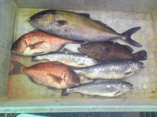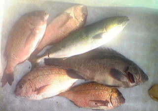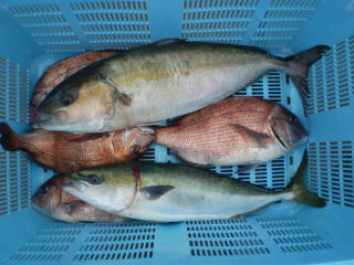 | 三重県 紀北町引本浦 釣り堀 貞丸 | 釣果 私→タイ5、ハマチ1、カンパチ1 おかず→タイ6 |