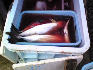 | 新しい年度が始まり、多忙な日々が続く中で、気になるのは連日の傳八屋の釣果報告。冬場に貯まったイシダイが、群れをなして上層を泳いでいるとか。 とはいえ、食いも上向きで、日によっては数十枚単位で釣られてしまい、日に日に群れは消滅している模様。好機を逃しては、行っても無駄とは思いながらも、数枚程度の残りはあるだろう。うまくいけば、1枚、2枚を釣るチャンスはあるかもしれないという思いが募っていた。 土日は毎週満員の状態で、入り込む余地はなさそうである。そうした中、今年は水曜日の仕事が比較的少ないのだが、他の曜日に頑張ることで水曜を休める見通しがついた。 天気予報も晴れで気温が上がるという。これは行くしかないと、密かに月曜辺りから考えていた。とはいえ、急な仕事が入る恐れもあるので、傳八釣行の最終決断は前日、すなわち火曜日の午前中だった。とうことで、まさにスクランブル発進釣行であった。 ただ、気になることが一つ。それは、我が家の冷凍庫のキャパシティ。 息子が県外に行ってしまい、妻と二人だけではなかなか消費が進まない。しかも、今月7日に三重釣り歩き会の「お花見釣行」に行ったばかりで、ほぼ満タン状態。中には、息子と行った2月の切り身まで残っている(汗) でも行くためにはなんとかせねばと、持って行く冷凍エサを出して空間を作り、また、切り身を整頓して入れ直して少量のスペースを確保した。 しかし、大量には入らないので、今回の釣行の目的は、普段釣っている種類以外の魚を少量狙うということにした。なので、大型の青物は避けなければならないということである。まあ、狙っても釣れないのだから、心配は不要だとは思うが・・・(笑) さて、24日(火)の仕事を終えて帰宅後、急いで釣行の準備をした。そして、22時過ぎには家を出ることができた。 一人の釣行なので、経費節約のため23号をひた走り、玉城のエサ屋に着いた頃には日付が変わっていた。エサ屋に客は誰もいなくて、シラサとアオイソメ、氷だけを買い、隣のコンビニで食料と飲み物を買い、傳八屋の駐車場には1時過ぎに到着した。 仕事の日にそのまま出かけたため、疲労感は頂点で、「なんで来ることにしてしまったのだろう・・・」なんてちょい後悔しながら、トイレを済ませ、車内で仮眠を取った。 5時半に目が覚めると、多くの人々が準備を始めていた。 私も6時には受付を済ませ、準備を始めた。すると、駐車場によしじいさんを発見。ご挨拶をした。よしじいさんとお会いするのは2年ぶりくらいだが、お元気な様子でなによりであった。よしじいさんも、お一人で来ていらっしゃるということであった。その後は別々のイカダで、あまりお話も出来ずに1日が終わってしまった。次回は、ご一緒したいものである。 本日のイカダは3号だった。6人が割り当てられ、くじの結果以下の位置になった。私の引いた番号は13番で、皆さんが場所決めをした後、残った所に入れてもらった。 ![]() 荷物を下ろして、早速準備をして釣り始める。最初はいつもの通り、黄甘エビで8mを探る。しかし、しばらくしてもウキに反応はなく、キビナゴに付け替えてみる。エサの問題ではないようで、アタリのないのは変わらない。 そこで、リールを巻き上げて6mで止めると穂先に反応が。食い込むのを待って引き上げると、タイとは違う手応えでサクラマスが上がってきた。うれしい1匹目だが、暴れてばかりで針をはずそうとするが、なかなか持てない。ウロコは飛び散るし・・・やっとスカリに入れた頃にはぐったりと瀕死の状態。仕方なく、自分で絞めてクーラーに入れた。今日は暑いだろうと氷を買ってきたが、それが役に立った。 次を狙うべく、同じ棚にキビナゴを下ろしたら、またサクラマスが釣れた。今度はタモに入れたまま口だけ持って、針を外したら、元気にスカリの中を泳いでいた。 再度同じことをしたが、もうアタリはなくなってしまった。目先を変えようと、イカの塩辛を付けて底まで落としてから1〜2m上げてみた。すると、これがうまくいき、穂先にアタリ。食い込むのを待って巻き上げると、また不思議な手応えが・・・上げてみると、小振りながらハタマスが上がってきた。 おお〜!やったーと喜ぶが、なんで鍋の季節には釣れなくて、こんなに暖かくなってからなの〜?と思うが・・・まあいいか(笑) その後1回目の放流を挟むが、大して活性は上がらず、キビナゴでとっても元気のいいタイを追加しただけだった。 その頃だったか、自分の前にある他人のウキをぼんやり見ていると、アタっている。いいな〜と思いつつ見ていたら、あわせた後、その人がつり上げたのはイシダイだった。うらやましいと思いながら、暇な自分は竿を持ったまま、その人の様子を見ていた。 すると、立て続けにぽつりぽつりとイシダイを重ねていくではないか。ひょっとして、ここに噂のイシダイの群れがいるのか。そう思い、その人のウキの近くに、自