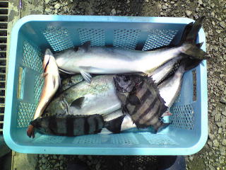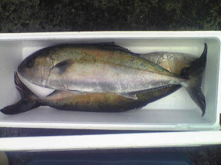 | 福井県 三方郡美浜町日向 海上釣堀フィッシングレインボー | 釣果 カンパチ2、タイ5、シマアジ1、サンバソウ2 |