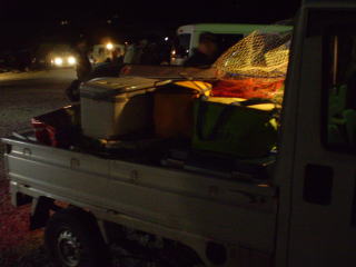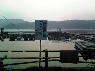 | 昨年末の12月に計画はしたものの、私の風邪が原因で中止になってしまった親子釣行。 あきらめきれず、また、4月から息子のおかずは他県に行ってしまうので、なんとか3月までに親子で行こうと密かに思っていた。 しかし年明けは寒い日が続き、なかなか行く気になれなかった。 節分を過ぎたら、少しは寒さも和らぐだろうと思い、また自分の仕事の都合も考えながら、2月中旬の平日に釣行日を計画した。 平日の休みは、ずいぶん前から決めておく必要があり、天候が悪くてもそうそう変更することはできない。仮病を使えば、当日の朝に電話一本で休めないこともないが、職場の他の誰かに迷惑がかかるので、なかなかそれは難しい。 天候が最悪の時は、また中止ということにもなりかねないが、まあなんとかなるだろうと計画した。 さて、どこへ行くか迷ったが、つい最近イケチャンとカーク船長さんが行かれた貞丸に行くことにした。お二人の釣行記を拝読し、だいたいのイメージができたことと、あわよくばハタマスが釣れればいいな・・・ということ。 また、ブリ等の大型の青物よりは、中物主体の方が、ほぼ初心者のおかずにはいいかもと思ったこと。 更には、前日までの天気予報では強風が予想され、(この予報は、当日は完全に外れたが・・・)カーク船長さん情報で、貞丸は冬場の季節風の影響を受けにくいと知ったこと。 おまけに、おかずが先月末に自動車免許を取ったので、多少遠距離でも交代で運転してもらえば楽ちんだという思いが、少し遠方の釣り場への抵抗感をなくしてくれたこと。 こんな、理由で貞丸に決めた。 往路は、当日の早朝出発よりも、前日に出発し、車中で仮眠という方法を選んだ。普段でさえなかなか寝付けない私にとっては、現地に到着してから開始時間まで仮眠する方が、体を休めることができ、はるかに楽なのである。 ということで、14日の22時半に自宅を出発した。本当は、もう少し早く出発をしたかったのだが、おかずがのんびりとしていて、結局この時間になってしまった。 一人っ子というものは、何かにつけマイペースであるから困ってしまう。 出発してしばらくは、23号を走行したが、そこそこ混んでいて、このままのペースだと現地に着くのが遅くなると思い、みえ川越から高速に入った。高速道路は、大型トラックがひしめいていて、恐怖を感じるほどであった。亀山を過ぎる辺りから空き始め、やれやれと思っていたら、勢和多気のJC付近から霧が出始めた。 さすがに、初心者マークのおかずには、この状況は難しいだろうと私が運転したが、霧はますます濃くなるばかりで、大宮大台辺りでは、トンネルを出ると濃霧で、真っ暗な中、視界は20m程度・・・という状態だった(冷汗)。 そういうわけで、気勢大内山ICを出ることには、もうヘトヘトになっていた。 インターを出たすぐのエサ吉で、シラサ、活きアジ、ボケ、青イソメを買った。それ以外のエサは、自宅から持参したのでエサ代はそれほど高くはなかった。 因みに、自宅から持参した冷凍エサは、ほとんど前回新年会の使い残しで、イワシ、ミック、魚かしの団子、ウタセエビ、小イカ、サンマ、キビナゴ、ササミ、甘エビであった。 隣のサークルKで食べ物を買い、後は42号を目的地までノンストップであった。この頃には霧も薄くなり、少しリラックスして運転ができたが、最後に迷ってしまい少し時間をロスしてしまった。ナビは付いていないし、頼りになると思って持ってきた地図は、なんと南伊勢以南は載っていなかった(汗) 午前2時を過ぎた頃、なんとか貞丸の駐車場に着くと、1台だけ車が停まっていた。その横に停め、仮眠の準備をした。 トイレに行ってから寝ようと思ったが、事務所は電気が消えたままであった。さっきサークルKで済ませたからいいかと、そのまま仮眠することにした。 しかし、これは夜が明けてから分かったのだが、貞丸のトイレは壊れていて、すぐ近くの公園の公衆トイレに行くように張り紙がしてあった。釣り堀客以外にも、トイレを勝手に使う者がいて、更には使用状況が良くないので、そうしているらしい。 まあ、貞丸にはそれなりの事情もあるのだろうが、24時間冷暖房完備+ウォシュレット付きのトイレがある傳八屋とは大違いである。 公衆トイレが、それほど汚くはないのが救いであったが、トイレットペーパーは切れていた・・・ さて、前置きが長くなったが、当日の話にしようと思う。 早朝の雨の音に目が覚めて、少し明るくなってから確認すると、やはり雨だった。天気予報の嘘つき!(笑)まあ、風のないのが救いだった。 6時半前に受付を済ませると、3号イカダに乗るように言われ、釣り座のくじは2番と言うことだった。3号は、最初にここへ来た時乗ったイカダなので、どこに釣り座を取るか、頭の中でイメージをすることができた。 ![]() 6時40分に船に移動すると、間もなく出船した。時間に関係なく、お客が集まったら出発するようで