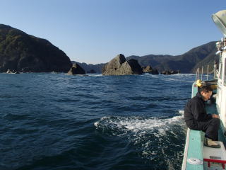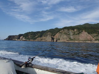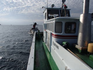 | 台風が毎週末に襲来し、2週連続で行くことができなかった。やっと天候も回復し、今週末はどこへ行こうかと考えた.。HPを検索していると、以前から気になっていた福井県小浜市の川代丸に「週末も空きあり」という記述を見つけて、行くことにした。集合時間は前日に電話で確認ということだったので、電話すると7時と言われた。HPには8時〜16時とあったのだが、少し早めに出船するらしい。まあ、いつものように前日から車中泊だから、何時でもよいのだが・・・ 今回は前々日から準備をしたのだが、初めての本格的なジギングもするというのでその準備がなかなかはかどらず、・・・なんせPEのリーダーに8号を編み込むなんてやるのは初めてだし・・・・・・前日は結局22時半くらいになってしまった。 高速代を節約するために、木之本ICで出て琵琶湖畔を走る。敦賀まで行ってから舞鶴若狭道路へ行くよりは時間がかかるのだろうけれど、小浜方面へ行くにはそれほど時間のロスはないように思われたのもあったからである。関係ないが、途中「マキノ高原」はこちらという看板のある場所を通るのだが、なんでカタカナ書きなんだろうと思ってしまった。 小浜市に入ったのは深夜だったが、取りあえず中心部でコンビニに入る。現地付近にはコンビニがないからである。でその後、見覚えのある甲ケ崎を通り過ぎ、エンゼルラインの入り口の方へ行く。その辺りに行くとぐっと道幅も狭まり、途中シカにも遭遇した。西小川に着くと、HPにあった写真から駐車場を探してそこで仮眠する。 6時過ぎに起きて、準備を始める。駐車場には他にも車がたくさんいたが、オールを借りていく人が多くて、たぶん貸しボートの人であろうと思われた。 6時半を過ぎた頃船長が来たので、挨拶をすると、軽自動車に荷物を載せるように言われた。他の客も皆さん集まってくるのだが、皆さん本格的なジギングタックルで、「なんちゃってジギング」の私にはちょっと気が引けた(^_^;) 今日の客は6人で(定員は8人)、じゃんけんの結果1番だった私は左舷の最後尾に入ることにした。ここなら多少仕掛けが流れても、他の人に迷惑をかけることはなさそうだし・・・(^^) ![]() 皆が集まったので港へ移動し、軽トラで運ばれた荷物を積み込み、7時には出船した。船長からは青物狙いとエギングを状況次第で切り替えるので、どちらも用意しておくように指示された。小浜湾を囲む半島の外側へ出て行くのだが、昨日の波がまだ残っており、揺れが結構あった。でも船酔いするというほどではなかった。で、20分くらい走ったところで、船長から青物狙いの指示があり水深40m程度の場所で釣り始める。陸地が間近に見える辺りで、奇岩が見えて、まるで遠征釣りの雰囲気だった。 ![]() しかし、雰囲気とは裏腹に魚の反応は無かった。本格的なジギングが初の私は仕方ないが、他の人も釣らないので魚がいないようである。二〜三流しした後、船長から「台風後はダメだな〜。エギングに変更します。」との指示があり、場所を移動する。 水深20mくらいの場所に移動して、ティップランエギングを始める。三重の船では、船の片側だけから竿を出すのだが、福井では両舷に3人ずつの配置のままであった。常識が違うので、あれ?と思ったが、一流しずつ船の向きを変えるので大丈夫だということであった。実際には、船が流れていく方の釣り座であっても、船の下に餌木が入るがそれで釣れたので、こんな流し方もいいのかもしれないと思った。釣り座を広く使えるし・・・(^^) で、福井県初のティップランエギングに、三重流が通用するのか不安だったが、いつものように25gにノーズコーンを付けてやってみる。餌木はコノシロカラーを使用した。すると、2〜3投目に穂先が戻るアタリがあり、あわせると乗った(^_^)v 小型だったが、1パイ目が釣れた。同様のやり方で釣っていると、今度は穂先が入って釣れた。他の人はティップランに慣れていないのか、最初のうちは自分だけが釣っていた。 その後、場所を移動して3バイを追加した。他の人も徐々に釣れ始めていた。サイズは最大で400g程度までだが、明らかに三重よりは魚影が濃いと思った。 10時を過ぎた頃、青物狙いに移動となり、またジギングを始める。アタリもなく、ジャークのパターンもいまいち分からないまま、釣れそうな雰囲気もないまま時間が過ぎていく。すると、数投目に落とす途中で糸が止まった。水深は70mなのだが、30mまで落としたところであった。すかさず巻き上げてあわせると乗った(^_^)v 大した手応えもなく、サバか?って感じだったが、上げてくると少しずつ手応えが増し、何だろう?と上げてくると50cmのサゴシが釣れた。ジグ以外にも、ベイトのしっぽをくわえていたので、たまたまベイトの群れの中にジグが入り、それを捕食したらしかった。釣れ方は別にして、今日初めての魚の手応えがとっても嬉しかった。 しかし、その後は無反応となり、またエギングに移動とな