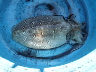 | 9月の上旬頃、既に予約が一杯になりそうだったのでとりあえず予約しておいた。だから、当日の天候を考えての予約ではなかったのだが、運良く穏やかな好天になった。 いつものように前日出発したのだが、家を出る頃から喉に痰が絡むようになり、翌朝起きてみると喉が痛くて声が出づらくなっていた。どうも風邪を引いてしまったようである(>_<) まあ、熱が出るとかではなく、とりあえず釣りはできる状態なのでよかったが・・・ 6時前に船長が到着し、磯の客を送って行った。待っている間にティップランの客で釣り座のじゃんけんをした。今日の客は3人、1人、1人、私の6人だった。3人グループには前の釣り座に入ってもらうこととし、残りの3人でじゃんけんをしたら、私は一番勝ったので最後尾に入った。やっぱ、一番前とか、一番後ろとか、釣り座を広く使えるところがよい。 予約なしで、しかも遅れてきたチヌイカダの客を送りつつ、まずは湾内のいつものポイントから始まった。 ![]() 前日の船長のブログで、グローカラーがいいと書いてあったので、まずはそれから始める。一流しするが反応はなく、前の人が1パイ釣っただけだった。その後も反応はなく、ラトル入りのコノシロカラーに変更する。 底は砂地のようで、根掛かりはほとんどないので、遠投して探る。水深も浅く、船のエンジンは掛けっぱなしなので、真下に落としてもラトルの効果は望めないと思ったからでもある。 3流し目くらいに、遠投してしゃくり、止めたら穂先が反応して合わせたら乗った(^_^)v そこそこの手応えでゆっくり寄せてくる。で、1パイ目が船長のタモに収まった。船長が測ってくれると、910gということで、このシーズンにしてはなかなかのgoodサイズだった。 ![]() その後、次の流しで小型が1パイ釣れたが、全般に低調だった。しばらくして、反応っぽいのがあって合わせたのだが根掛かり?でも、ラインを持って引くとなんとか引っ張れる・・・穂先で聞くが反応はない・・・完全にゴミだと思って引いてくると大きめのコウイカ(カミナリイカ)が付いてきた。なんか、釣ったという実感はなかったが嬉しかった。 その後は、湾を出て沖のポイントへ移動する。移動後、すぐには釣れなかったが、3流し目くらいに入った時、流し始めで即乗った。アオリほどの反応がないと思ったら、最初に釣ったのと同じくらいのコウイカ(カミナリイカ)が釣れた。でも、連続してという感じはなく、しばらくしてからやっとという感じで小さめのコウイカ(カミナリイカ)が釣れた。 ポイントをあちこち変えてくれるが、なかなかイカの反応はないまま、時間が過ぎていった。 変化があったのは昼過ぎだった、ポイントを変えた途端、落ちたら乗ったと前の人が言い、すぐにその前の人も掛けた。今がチャンスと思っていると、自分にも乗った。船長さんは大忙しでタモ入れしてくれて、私のもタモ入れしてくれた。しかし、その一瞬だけで、ラッシュはもうなかった。 40mくらいの深場も流してくれたが、追加はなく13時半過ぎに終了した。 ![]() 先週の数狙いの福井小浜とは違って、型狙いの三重だったが、期待通りの大型が釣れた。重量は結構あったので、満足であった。 目次へ |