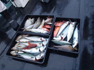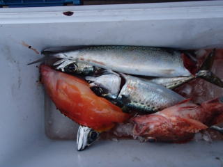 | 三重県度会郡南伊勢町宿田曽 渡船屋 たにぐち | 釣果 アカハタ1、サバ4、カサゴ1、その他雑魚いろいろ アカイカ5 |