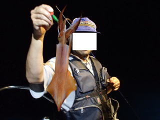 | 以前からお知り合いであったすぎ−Kさんと、最近イカ釣りで情報交換を頻繁にするようになり、今度一緒に行きましょうということになった。 で、すぎ−Kさんが何度か行っている錦の「太幸丸」のイカメタルゲームへのお誘いをいただき、行くことになった。 出船は18時ということで、当日は17時に紀勢大内山で待ち合わせて、すぎ−Kさんと彼の釣友ノブさんとともに錦の港へ移動した。道路事情はとてもよく、隘路もなくスムーズに15分程度で着いた。 土曜日の夕方なのに、港には人がまばらで、堤防釣りにわざわざ出かけても良いような感じだった。水面を覗くと、メバルなのかコッパグレなのか結構な魚が見える所に泳いでいた。 で、しばらく待っていると18時少し前に太幸丸が漁港の前にやってきた。今日の客は我々3人だけで、仲間内の貸し切りとなった。 荷物を積み込むとすぐに出発し、湾の外へ出て行ったが20分程度走っただけで、陸地の影が見える辺りであった。アンカーが入れられ、北陸同様の釣り方だと分かった。波風はなく穏やかで、船長から「今日は絶好の釣り日和だよ〜。」と言われ、期待度は高まる。 ![]() 明るいうちは底付近でやってねと言われたので、まずは底まで落としてみようと試みる。水深は60mというので、リールのカウンターが60mを超えるくらいに落としてみる。すると・・・65mちょっとで止まったのは良かったが、巻き上げようとすると根がかかりしてしまった(>_<) で、糸を持って引っ張るがぜんぜん外れなくて・・・いきなり鉛スッテ(オーシャンナイト10号)とアシストリグに付けた2号のエギをロストしてしまった。それだけで気分が一気に萎えてしまい、また底付近を狙えと言われても、再び根掛かりするのが怖くて、しばらくは50m程度の辺りを探っていた。 イカの反応は相変わらずないままだったが、50mくらいで一度だけ「コッ!」っていう感じのアタリが穂先にあり、ちょとだけワクワクする。しかしそれだけで終わってしまった。 ![]() で、それ以外の反応はなく、そのうちに暗くなってライトが点灯された。ライトは日本海のように白色ではなく、オレンジに近い電球色だった。また、光量も日本海ほどではなく、やや暗く感じた。カウンター付きのベイトリールだったから良かったが、細いPEライン色で水深を見極めるのは無理だと思った。 当たりもないので、当然イカのいる棚も不明で、虚しい時間が過ぎていった・・・、19時半くらいだったろうか、巻き上げてスッテを交換して投入するとラインが途中で止まった。水深は15m程だったが、「これは!」とあわせると反応があり、手応えはあまりなかったものの10cmちょっとのムギイカ(小スルメ)が釣れた。 やっと釣れたので、すぎ−Kさんにも、15mが当たり棚だと報告する。その後は、同じ棚でムギイカ3〜4ハイを追加したが、皆アシストリグの方の浮きスッテばかりだった。まあ、とにかく釣れたからいいかと同じ棚で誘っていると、当たりがあり今度は結構な重量感が!で、巻き上げると良型のスルメイカが釣れた。このスルメは鉛スッテにかかっていた。 ![]() その後は15mでの当たりが遠のいた。水面近くには極小ムギイカが浮いてきているが、さすがにそれはスッテに寄ってこなかった。またトビウオや小型の魚が泳ぐのが見えた。そこで、去年の夏の日本海で、イカの遊泳層がコロコロ変わったのを思いだし、次は一気に40mまで落としてみる。 反応はなかったので、電動リールに似せて一定のスピードでゆっくり巻き上げてみる。すると、20m付近になった頃に穂先がグンと押さえ込まれてイカが乗った。今度もまずまずの手応えで、上げてくると良型のケンサキイカが釣れた。とっても嬉しい釣果だった。 それで、以降は20m〜30mを中心に狙い、ポツポツとまたムギイカを釣り、ケンサキイカも1パイ追加した。 しかし、その後は中だるみで21時頃からは何も釣れなくなってしまった。棚を上げたり下げたりするがダメで、スッテを換えてみるがそれもダメだった。時折当たりがあるのだが、イカが小さいのか乗らなかった。 22時に近づいた頃、30mを超えた辺りで穂先が戻る明確な当たりがあって、やっと追加が釣れた。これも良型のスルメで、船長が写真を撮ってくれた。 終盤、すぎ−Kさんは調子が上向きで、良型を連発していたが、私は波に乗りきれず虚しい時間を過ごした。たぶん、この時間をもっと有効に使えば釣果も伸びるのだろうが、有効に使うべき手立てがなかった。きっと、もっと研究し、経験を積めば他の技も繰り出せるのだろう・・・まあ、次回以降の宿題なのだと思った。 22時40分には終了し、片付けをして寄港した。帰り着いてちょうど23時という感じだった。 今回、初めてイカメタルを経験したわけであるが、胴付き+電動リールよりは遥かに面白いと感じた。なんと言っても、1パイ1パイを掛け合わせて釣ったという実感がある。また、巻き上げも手巻きなので、竿にグングンとイカの反応が伝わる