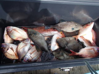 | 福井県丹生郡越前町 日昭丸 | 釣果 チダイ10、マダイ1、キダイ(レンコダイ)4、ウマヅラハギ4 |