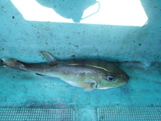 | 夏に職場の仲間と、福井へイカ釣りに行く計画を立てた。しかし、今年はイカの釣果が芳しくなく、また予定していた日の予報は雨で、中止になってしまった。 9月になり、ほんの数日だったがマイカの釣果が好調になり、これならいいかも!?ということで、20日に行く計画を立てた。しかし、結局イカの釣果は復活することもなく、でもまた中止にするのはもったいない・・・ということで、朝からの五目釣りに行くことになった。 当日は5時に集合ということで、1時50分頃に出発する。同行したのは職場の同僚であるNさん、しんべいさんの2人であった。 ![]() 名二環〜名高速〜名神〜北陸道と乗り継いで、敦賀で高速を出てしおかぜラインへ。スムーズに走ることができ、4時頃には現地近くのコンビニに到着できた。買い物とトイレを済ませ、港に行くとまだスタッフは来ておらず、港で釣っている人がいるだけだった。 5時近くになって深夜便が帰ってきたので、その船長に聞くと、朝便は向こうの船だと教えてくれた。ついでに、深夜便の客に話を聞くとマイカは3〜4ハイ程度だったということだった。 で、指定された方の船に行くと、船長と助手が来ていて準備をしていたので、挨拶をして乗り込む。今日の客は我々3人だということで、乗り合いだが貸し切りだった。 私以外は貸し道具なので、船長と助手が手際よく準備をしてくれる。私は自分の道具を準備し始めるが、完了しないうちに出船した。船は港を出て、少し出た所で速度を緩め、アンカーが入れられた。夏に行ったマイカの時よりはやや沖合だが、陸地が間近に見える場所であることは同じである。水深は50mくらいということで、教えられたとおりサビキ針にオキアミを付け、かごにオキアミを詰めて底まで落とす。 ![]() 落とすとすぐに反応があり、巻き上げるとチダイが釣れた。型は小さいが、小気味いい反応で飽きない程度に釣れた。落として、そのままでも釣れるし、竿をあおってこませを出して、仕掛けをやや上げるという感じでも釣れた。一度、結構な重さで良型かと思ったのだが、チダイ意外にシイラの子が付いていた。シイラは釣っては楽しいのだが、食べて美味しい魚ではないのでリリースした。その他、結構小さいチダイやマダイ(チャリコ)も釣れてくるので、それらはリリースした。また、マダイが1枚釣れたがやっと30cmという小型のサイズだった。 ![]() 8時を過ぎた頃から、アタリが遠のき船長から場所移動の指示がった。10分くらい走って、やや沖合に場所を変えた。今度は77mということで、期待して釣り始める。しかし、地合いが終わってしまったのか、魚の反応がない。何度も打ち返すが、状況は変わらず、針に付けたオキアミもそのまま残ってきた。 なんとか、やっとのアタリを拾って釣り上げたら、綺麗なキダイ(レンコダイ)が釣れた。 マダイ キダイで、船長からアンカーを打ち直すとの指示。小移動して、アンカーが入って安定したら釣り開始。しかし、こちらも反応がないのは同様だった。しかし、今度は針のエサは無くなって上がってきた。どうも雑魚がいるらしい。しばらくすると、しんべいさんがウマヅラを釣った。どうも、底にはウマヅラが群れているようで、それでエサは取られても針が掛かりしないようだった。 そこで、竿を手に持って、聞き合わせやら軽くシェイクやらしていたら、なんとか乗ってウマヅラが釣れた。その後同様にして、ウマヅラを追加した。 途中、アオリが水面下に浮いてきたが、今日は道具を持っていないので、指をくわえて見ているだけだった。助手がテグスに直接エギを結んで狙ってみたが、釣り上げることはできなかった。 また、穂先の反応が微妙なので?? と思って巻き上げたら、豆アジが掛かって上がってきた時があった。ちょうど水面下にシイラがうろうろしていたので、豆アジが付いたままの仕掛けを水面下1mくらいにそのままにしておいた。そうしたらそのシイラが豆アジに食いついた。しかし、船から見ていたよりも実際の魚体は大きかったようで、一度ジャンプした後、4号ハリスをあっという間に切って逃げていった。まあ、シイラなのでどうでもいいのだが、ほんの少しタテ釣り、泳がせ釣りの雰囲気を味わうことができた。ジギングのタックルを持ってきていれば上げられたかも・・・と思った。電動リールは、ドラグの効かせかたがイマイチである。 その後、Nさんが豆アジを釣ったというので、それをもらって、泳がせで釣ろうと底付近で狙ってみた。一度穂先に反応があったが、針掛かりはせずアジだけ無くなっていた。 秋は、いろいろなパターンがあるので、道具もいろいろと持って行った方がいいのかもしれない。一応、事前の予測では、船仕掛けでやっていれば、他のことはやる暇がないくらいなのかと思っていたのと、準備が面倒なので持って行かなかったのだが・・・ 11時10分頃にあと15分の連絡があり、11時半頃に沖上がりして帰港した。 今回初め