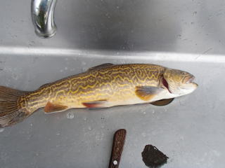 | 先週土曜日に、三重釣り歩き会の月例会があった。しかし、持病から体調を崩してしまい急にキャンセルすることになった。いきさつの詳細はこちら→日記へ そんなこともありながらも、ずいぶん前から取ってあった平日の休み。どこへ行こうかと考えたが、南伊勢の海上釣り堀まで行くのには不安が払拭できず(また、体調が悪くなったら一人で帰れるのだろうか・・・(-_-;))、また、知多から船に乗るにも波が高そうで・・・ 結局、往復の距離も近く、準備もさほど要らない管理釣り場に行くことにした。まあ、一人での釣行のリハビリとでも言おうか。 先月、愛知県北設楽の「戸神の池」へ行ったので、今回は三重県いなべ市の「フィッシングサンクチュアリ」に行くことにした。「フィッシングサンクチュアリ」は、三重県にあるのだが、自宅からは「戸神の池」よりも近いのである。 当日は5時に起き、5時30分に家を出たが7時10分頃には現地に到着した。少し待って7時30分になったら事務所のあるカフェが開き、受付を済ませる。平日なので客は6〜7人だった。 どこがいいのか分からないので、とりあえず第1ポンドへ降りていく。 ![]() 上記地図の矢印辺りの桟橋で釣り始める。朝の高活性を期待して釣り始めるが・・・反応は皆無(T_T) 周囲の人も誰も釣れず、またフライエリアはこの第1ポンドにしかないのだが、フライの人も虚しくキャストしているだけだった。40分近く桟橋の両側を探ってみたが、当たりすらないので第2ポンドへ移動することにする。 第2ポンドには7〜8人いた。さっきより狭いが、岸際にも何匹かの魚が見えるので、こちらは何とかなるかも・・・と期待してキャストする。 しかし、魚影は濃そうだが反応する魚はなくて、虚しくスプーンを引くだけの状態が続く(/_;) ひょっとして今日はボウズなのか・・・ 「戸神の池」へ行っていれば、朝一で2〜3匹は釣れたかも・・・などとマイナス思考が湧いてくる。 1時間程経つ頃、左にいた若者が、水の流入口付近の構造物近くで連続して見釣りで魚を掛けていた。 ![]() そこで、自分もその構造物近くをルアーが通るようにキャストする。すると、何投目かに待望のヒット!結構な重量感で、この日初の手応えを味わう(^o^) 糸が細いのでドラグは緩めなのだが、何度も糸を出され、それを寄せてを繰り返す。そのやりとりの最中、2〜3度魚が水面からジャンプして、よくTVで見るような「ナイスファイト!」を楽しんだ。 なんとか手許に寄せて、タモに収めると40cmちょっとのタイガートラウトだった。タモの長い方の径が、ちょうど40cmなので、およそのサイズはそれで分かる。 後で調べたら、タイガートラウトはブラウンとカワマスの属間雑種だそうで、釣り味の良さから人工的に作られたものらしい。見た目はいかつい模様だが、釣った感じは引きの強さといい、水面からのジャンプといい、最高の魚である。 ここサンクチュアリは、1日券で8匹持ち帰ることができるが、そのうち1匹は40cmオーバーも可ということなので、スカリを取りだしてこの魚をキープする。スカリを結ぶ場所がないなと周囲を見回すと、所々にフックの付いた柱が立っていた。そこで、その柱のフックにスカリのひもを掛けた。 ただ、他に魚をキープする人は誰もいないようで、自分だけ何か特別な行動をしているようで違和感満載状態だった(^_^;) 午後になって来た人は、スカリ持参の人がそこそこいて、その違和感も解消されたが・・・ 朝から虚しくボウズだったのが、いきなりいいサイズが釣れてやる気が復活する。周囲の人もポツリポツリと釣っているので、放流もなく日中になっても釣れそうだという気になる。 その後は、当たりがあっても乗らない、乗ってもバラシ・・・ということをたくさんやりながら25cmサイズのレインボー(ニジマス)が3〜4匹釣れた。レインボーをたくさん持ち帰っても仕方ないので、2匹だけキープする。 ![]() 昼になり、昼食を摂りながらちょい休憩する。ルアー釣りは、キャスト&リトリーブの繰り返しなので疲れる。エサ釣りのように、待っている時間がないので、常に動いているし、基本的に座って釣る人はいない。 同じルアー(エギ)のアオリイカでも、船でのポイント移動の時間は休憩できるので、本当にこの釣りは活動的である。 昼過ぎになってもそこそこ当たりがあるので、まずまず楽しみながら釣りをする。ただ、釣れてきても25cmのレインボーばかりだった。また、午前に比べると、明らかに食いが浅く(ショートバイト)て、バラシが多発した。 13時頃に隣で釣り始めた人が、連続でレインボーを掛けているので、しばらくはその人の釣り方を見ていた。その人は、白いフロートタイプのプラグを、水面でチョンチョンと動かして釣っていた。 で、自分も真似して明るい色のフロートタイプのプラグをキャストして、水面に浮いたままチョンチョンとアクションを掛ける。すると、底から魚がアタックするのが見えてレインボーが釣れた