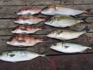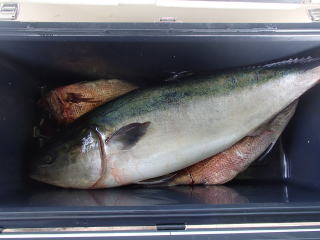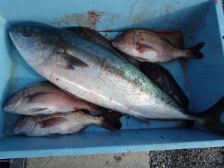 | 福井県三方郡美浜町日向 海上釣り堀 レインボー | 釣果 カンパチ1、シマアジ大1、タイ4、ツバス2、スズキ1 |