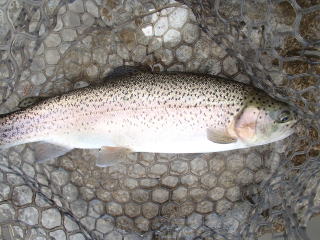 | 前回11月下旬に、福井小浜のジギング船に乗ってから約1ヶ月。 平日休みが取れた日に、堤防へジグのキャスト練習に行ったくらいで(当然釣果はボ〜ズ)、どこへも行かずに時間が過ぎてしまった。 冬になり、天候が不安定で荒れ模様の日が多くなり、荒天時の船釣りの厳しさ(拷問に近い)を経験して以来、少しの波風にも臆病になっていたこと。また、例年この時期になると喉の調子が悪くなることが多いのだが、今年も咳が治まらない日が多くなり、悪化させないためにも休日は静養を心掛けていたこと。などの理由から、ウジウジしながら時間を浪費していた。 まあ、年齢を重ねて体力的に無理が効かなくなったのと、いわゆる「草食系」が流行の世の中で、無理して「何が何でも・・・×××」な〜んて感覚が面倒っぽく感じ始めたのもあるのかもとも思っている(笑)。 それでも、このままどこへも行かずに引き籠もりになってしまうのも・・・と思い始め、平日に休みが取れるので、どこかへ行こうと考えた。 数日前から天気予報を何度も確認し、とりあえず雨だけど波は穏やかそうとの判断で、23日の錦の半夜便に電話を入れてみた。すると、月夜は釣れないから出船しないと断られてしまった(-_-;) では24日にジギングでもと思ったが、手軽に知多半島からも行ける太平洋側は、波が少々ありそう。日本海なら大丈夫そうだが、雨の後で風が強そうだし、そんなに釣れている感じもない・・・ では、釣り堀はというとB屋は平日なのに客が集まり「相談受付」になっているし、D屋はニコニコデーだし(放流がなければ、百戦錬磨の常連さん相手に自分が釣れる気もしない)、他の釣り堀は放流魚種がイマイチだな〜ということで、いいところがない(涙)。 そもそも巨大なブリを放流するより、小物(イサキやソイ)を数多く放流して欲しいものだが・・・その方が客が集まるのだから仕方ないのだろう。 まあ、一度引き籠もってしまうと、不平不満の文句ばかり出てきてなかなか最初の一歩が踏み出せなくなってしまう。引き籠もり生活から抜け出せない人の心が、少し分かった気がした(^^;) あれこれグダグダと書いたが、結局はライトに楽しめる管理釣り場に行くことにした。 準備も簡単なら、往復の距離も近い。波の心配もなければ、好きな時間に着いて、好きな時間に帰れる。とまあ、いいことが多いのだが、何かが物足りないのは仕方ないと諦めて(笑)。唯一の希望は、ヤマメやイワナも放流されているそうで、そういうのなら釣ってもいいかな・・・というものであった。 潮の香りもなければ、あこがれの美味しい魚も釣れないし・・・まるで男同士でピクニックに行くような感じで、それなりの楽しみはあるものの、本質的な部分での感動とか感激とか、何よりも、あこがれの女性と行くようなワクワク感がない(>_<) でも、1ヶ月も引き籠もった後でもあるし、また天候が変わりやすい季節の釣りとしては仕方がないと割り切った(^_^;) 管理釣り場は予約も要らないので、場合によっては止めてもいいか!?くらいに思いながら早めに床に就く。いつものワクワク感はないのでまあまあ眠れて、5時前に起きて準備する。で、結局出発したのは6時少し前だった。 ![]() 23号を使い、一般道で2時間で現地に着いた。駐車場の車は3〜4台で、客は5〜6人だった。代金を払い、第2ポンドへ行く。先客は2人だけだったが、去年入った場所は空いていないので、その隣に陣取ってスプーンをキャストする。 他の人は、結構いい感じで掛けているのに、私には反応がない。あれ?と思いつつ、キャスト&リトリーブを続けると、穂先に反応があり、この日の最初の魚が釣れた。アルビノのレインボー(ニジマス)で、そのままリリースした。 その後、適度にスプーンの色を変え4〜5匹を掛けたが、すべて20cm程度のレインボー(ニジマス)ばかりだった。他の人も、同サイズのレインボー(ニジマス)ばかりしか釣っていないので、第1ポンドへ移動する。 こっちは、第2よりも広くて水深があり、去年は全く釣れなかったが、フライエリアも設定されているので、ニジマス以外に何か釣れそうな感じがする。また、桟橋で釣るので、水面から適度に高さがあり、座って釣れるのも楽そうだった。 何回かキャストするが、全然反応はなく「やっぱダメかな〜」と思っていた。でも続けるうちに反応があり、タモ入れ前に外れたが20cmくらいのレインボーが掛かった。その後は、コツがつかめて、昼までに5〜6匹レインボーばかりを釣り上げた。 ![]() 結局、この第1ポンドでも釣れてくるのは20cm程度のレインボーばかりで、他の人も同様であった。 そこで、少し休憩しながら昼食を摂り、午後は第2ポンドへ戻った。朝よりも人が増えていたが、混み混みというわけではないので、空いている場所を探して釣り始める。 平日は放流もなく、午後は釣れないのかもと思ったが、そこそこアタリがあり、3〜4匹を追加した。とはいえ、皆20cmサイズのレインボーなので、写