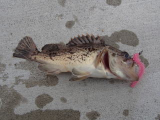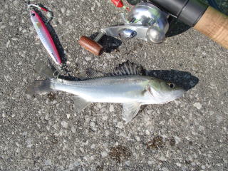 | GWにも宮古で釣りをしたが、全く釣れなかった。まあ、旅のついでであるし、釣っても持ち帰ることができないので、ルアー&ワームでの体験釣行みたいなものであった。この時は、宮古湾に向いた港で釣りをしたのであった。 夏休みになり、また北東北に行くことになったのだが、どうせ釣れないから・・・釣っても仕方ないから・・・と今回は釣りをしないつもりだった。でも、他にやることもないので、一応道具を持って行った。 当日は、ゆっくり起きて花巻のホテルを昼前に出発したので、現地に着いたのは12時少し前くらいだった。 ![]() 港全体を見るべく先へ進もうとすると、道路は震災以降通行止めのままであるとの看板が出ていた。そこで、Uターンして港に車を駐めて小突堤へ移動した。真夏ではあるが、曇り空でそれほど暑くはなかった。 金曜日のせいか、昆布の収穫作業をしていた漁業者以外に釣り人はなく、釣竿を持っているのは私だけだった。ひょっとして釣り禁止なのか・・・でも、堤防に「○○イソメ」と書いたふたがゴミで落ちていたし、仕掛けの袋も落ちていた。 釣りそのものは禁止ではないようなので、とりあえずは30gのジグを遠投して探ってみる。あわよくばヒラメやソイが釣れないかと・・・(^^;) しかし、反応は無く、堤防の足下を同様に探ってみるがそれも無反応だった。しばらくやってみたが、遠投して足下まで探ってきたときに根掛かり(>_<) 外れなくてロストしてしまった。 今日もボ〜ズかと思いながらも、今回持って来た「海毛虫」というワームを使ってみることにする。これは、三重の会社が今年売り出した製品で、三重では大アジが結構このワームで釣れているようである。 ![]() このワームに変更して数投目、ゴンゴンとアタリがあり、何か魚が掛かった(^_^)v 結構な引きで寄せてきたら見えてきたのはサバで、残念ながら水面でバラしたが初ヒットで嬉しかった。 その後は2〜3投に1回はアタリがあり、結構楽しめた。サイズは30cmに満たないぐらいであったが、それでも手応えはまずまずで、キャッチ&リリースではあるが、4〜5匹釣り上げた。また、水面でのバラしも4〜5匹あった。 途中激しく雨が落ちてきた時間もあったが、すぐに止んで、釣り続けることができた。夏なので、カッパも傘もなかったが、苦にはならなかった。 表層だとサバばかりなので、オモリを重くして底まで落として引いてみた。するとアタリが!でも、やはり釣れてきたのはサバだった(^_^;) 夕方までに盛岡へ帰らなければならないので、釣りは14時までと決めていた。残り時間が少なくなった終盤、堤防の際を探ってみた。アタリは1回だけだったが、ソイ(タケノコメバル?)が釣れた。 ![]() 堤防からの釣りにしては、楽しい釣りだった。震災からの復興が道半ばで、まだまだ立ち入れない場所が多いのだが、三陸の魚影は濃かった。 目次へ |