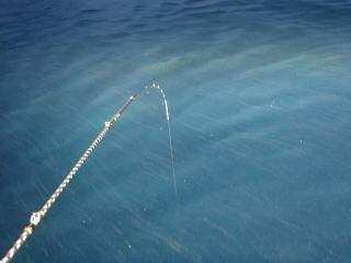 | 前回の釣行後、次はどこへ行こうか?と思っていたら、すぎーKさんからお誘いをいただき、まるよし渡船の若船頭の船に行くことになった。 まるよし渡船の若船頭の船には昨年数回乗ったことがあり、勝手は分かっているし、今年はアオリイカが好調のようで、期待して準備をし、いつものように前日に出発した。 ![]() 今週は散々な天気であった。3連休の最終日は台風の襲来、そして週の半ばの祝日は大雨が・・・でも、週末は回復する見込みとの予報であった。 しかし、前日くらいから少雨の予報に変わり、当日の朝は曇りだったものの、途中から雷雨で激しく降る時間帯もあり、天気予報にはまたも裏切られた日であった。 6時30分出船ということで、5時過ぎに起きて準備をする。6時少し前にすぎーKさんとノブさんが到着し、久しぶりの挨拶をして船に乗り込む。 まるよし渡船は貸し切り専用で、私を含めた3人でゆったりとスペースを使うことができた。なので、前にノブさん、真ん中に私、後ろにすぎーKさんで釣ることにした。 港を出て10分少々で最初のポイントに着き、ティップランで釣り始める。水深は20mくらいなので、まずは20gのオモリを付けて底取りしてしゃくって止める。しかし、イカからの反応はなく、周りも皆同様だった。風は弱いながら向かい風で、いい感じで流れてはいるのだが・・・2流しくらいで、ちょい移動となる。 次のポイントも同様なので、同様の釣り方でエギのみ交換しながら探ってみる。しかし、やはり反応はない。活性が低いのかもと思い、巻きジャクリでステイの後、2度目の底取りの時はハイピッチ2段で底付近を探ってみる。すると、穂先に違和感が(^o^) 合わせるとイカが乗り、船中1パイ目のアオリを釣り上げた。 ![]() でも、その後はサバフグの活性がすこぶる高く、穂先にアタリはあるのに・・・というのが続いた。巻き上げると、エギがズタズタに傷ついていた(>_<) カラーを変えたらいいかもと思ってチェンジしたら、落としていく途中でふっと軽くなり、リーダーが途中で切られてエギをロストした(涙) フグを回避すべく移動したが、アオリの反応は遠く、1時間ぐらいは何もなく流してしゃくり、ある程度流れると船を立て直し、その繰り返しだった。 ポイントをいくつか回った頃、また1パイ目と同じようなしゃくり方をしたらやっと2ハイ目が釣れた。この時は調子良く、普通の巻きジャクリ後のステイで3バイ目が釣れた。その後、いい感じのアタリを掛けたら、軽い手応えでアカイカが釣れた(^_^;) サイズは小さいのに、3号のエギで釣れた(^o^) それから間もなくして、ぽつぽつと雨が落ちてきたので、カッパを着た。雨が降るのは仕方ないが、強くはならないだろうと思っていたら、そのうち雷鳴が(T_T) 雨も強めに降ってきて、一時船室に避難する。 落雷に遭ったら・・・と思いつつも、船長が釣り始めたので外へ出て、船長に雷のことを聞いてみると、これくらいなら大丈夫だというので、釣りを再開する。船長の言うとおり、雷鳴はやや遠ざかり、周囲の船も避難する様子はないので、がんばろうと思う。 雨は激しく降るときもあって本降りになり、終了まで弱まることはなかった。 それからしばらくして、流し始めたらすぐに反応が(^_^)v ノブさんもすぎーKさんも船長も皆ヒットした(^O^) ちょうど時合いだったのか、バタバタと釣れた。ただ、、私には単発で、4ハイ目が釣れただけだった。でも、その時合いも一瞬で、すぐに静かになってしまった。 終了まで残り40分くらいになった頃、船が流れず15gのオモリでも真下に落ちていくので、ベイト仕掛けにアシストのエギ(三重では「お助けリグ」)を付けてみる。ベイトリールでのしゃくりはイマイチ要領がつかめず、最初は何も反応がなかった。 でも、巻きジャクリっぽい動かし方で止めると、穂先が押さえ込まれるアタリがあった。あわせて巻き始めると、いい感じの手応え(^_^) 水面まで見えてきたらアオリだった。アシストの2.5号のエギに乗っていた。 しかし、その方法も1パイのみで追加はなかった。 残り時間もわずかとなり、港に近いポイントに戻る。ここでもなんともならなかったが、数回目に何かが乗った感じがした。半信半疑で巻き上げると小アカイカが乗っていた(^_^;) 釣果はそこまでで、12時少し前に終了して、帰港となった。 帰港して船長と話をしていたら、落とす途中でエギにアタリがあったので、活性は悪くはなかったが、風がなく船が流れなかったのが今日の敗因だということだった。 今季2回目のティップランであったが、イカの気持ちはよく分からないというのが正直な感想だった。エギのカラーやら、しゃくり方やら自分なりに工夫したつもりだったのだが・・・まあ、回数を重ねれば、当たりの日もあるだろうぐらいに考えておいた方が気楽なのかもしれない。 誘っていただいた、すぎーKさん、ノブさんに感謝の1日であった。また、次回もご一緒できればと思う。 目次へ 一番下へ