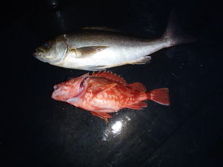 | 三重南伊勢町宿田曽 渡船屋たにぐち | 釣果 イサキ(35cm)1、カサゴ1 アカイカ(ケンサキイカ)23 |