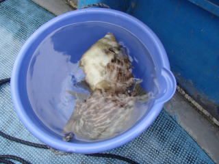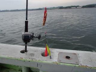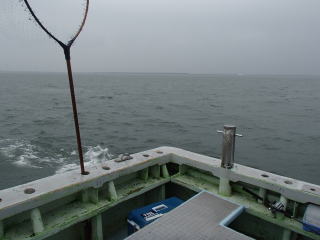 先週は目の回るほどの忙しさだったのだが、この26日は休める日なので、またどこかへ行こうと考えた。別に出かけなくても、出勤してゆったりと残務をすれば、他日が楽になるので、普通に出勤すればいいのかもしれないが・・・やっぱ、平日に休めるとなると、どこかへ行かなくては!と思ってしまう(^_^;) ![]() 行くならもちろん日本海のイカと考えたのだが、翌日は普通に仕事なので半夜便は辛いし・・・波は穏やかそうなので、太平洋でスルメイカに初挑戦かとは思ったけど、天気予報は雨の感じ(>_<) これでは沖干しは無理だな・・・それにスルメ用の竿やオモリ、仕掛けを買わなければいけないし・・・ と考えるうち、三河湾内の浅場でやれるタコ釣りに興味が湧いた。同じ軟体系でもイカは少々食べ飽きたし(^^;) とうことで、6月にイサキ釣りに行った大進丸に、タコ狙いの出船を確認して予約を入れた。その時に、オモリの号数(20号)やら、だいたいの水深を教えてもらった。ついでに、関西のようにエサ釣りもできるのかと聞いたら、それはやれないと言われた。少ない資源を、チビチビと利用するためには仕方のないことか・・・^^; それで、仕事の帰り道に釣具屋に寄り、タコエギやらビニールのヒラヒラやらを買う。また帰宅してから、アオリ用に買ったエギのうち、古くてあまり使用しなくなったものも準備した。根掛かりでロストした場合の予備にと思ってである。 いつものように、前日出発する。片道50km程度なので、一般道を走ってもその日のうちに豊浜に到着した。駐車場に着くと、車は他になく・・・黄色いテントの中に明かりも点いていない。6月の時は、船の釣り座表が机に貼ってあって、先着順に好きな場所が選べたのに?あれ? まあ、とりあえず仮眠する。4時前に受付の女性がやって来たので起きたが、「今日は人数が少ないので、座席表は出さなかった。好きな所で釣ってね。」「ただし、船長から様子が見やすいように、左舷で釣ってね。」ということだった。 なんとタコ船の客は私を含めて3人。他にはイサキ船に7人ということだった。そこで、私は左舷の一番後ろに入った。他の2人は友人同士で、前に入った。 予約時に、4時45分出船と言っていたが、その時間通りに出発する。船は20分程走り、師崎を回って知多半島の東側の浅い場所(水深4〜5m)で釣り始める。周囲にも同様の船がぽつぽついた。空はどんよりと曇り、今にも雨が落ちてきそうな天候だった。 最初に船長が、「軽く投げて、エギをアクション付けて引いてくるんだよ。」「重みを感じたら素早く巻き上げて。最初はゴミかと思うよ。」と釣り方を教えてくれた。そして、船長自身も、真ん中付近で釣り始める。 私は、「な〜んだ、それならスピニングタックルを持ってくるんだった。」と後悔する。船は流し釣りだろうし、ベイトリールの方が強引に巻くのにはパワーがありそうだと考えてである。また、根掛かりしにくいのもベイトルール仕掛けだということも考えたからである。(底に着いたら、即棚取りができるから。) 遠投することは考えていなかったので、ぎくしゃくしながらベイトリールでちょい投げしながら釣ったが、道糸が同軸リール特有のバッククラッシュで絡み、焦ることがままあった。その度に、なんとかほどいて難を逃れたが・・・(^_^;) さて実際の釣りは・・・、流し釣りではあるが、大して船は流れなかった。また底は砂地なのか根掛かりもなく、ちょい投げて誘いながらの巻き上げを繰り返すが、変化は感じられなかった。船長の様子を見ながら、巻き方や誘い方の真似をする。でも、肝心の船長が釣らないので、釣れる気がしないまま時間が過ぎた。 30分以上経ち、2〜3流し目になんか重たくなった感じがし、ひょっとして?と思って巻くと500gのタコが着いていた。ゆっくり巻いていたので、船長から「素早く巻き上げないとバレるよ。」と言われたが、なんとか船中1匹目をゲットした。 その後に他の人も1匹釣り上げ、また自分の竿に重みが!今度は素早く巻き上げたが小さめの220gをゲットした。しかし、その後は乗らなくなり、移動となる。 ![]() 船は三河湾を走り、豊橋沖辺りで釣り始める。ここも水深は4〜5mで、根掛かりはほとんどないか、海藻やらイソギンチャクの仲間が引っかかってくる程度であった。それでも、海藻帯にさしかかると、移動して流し直してくれるので、根掛かりは気にならなかった。 移動して期待感は膨らむが、全然釣れなくなってしまった。一方同船者は調子良く、ぽつりぽつりと釣り上げていた。う〜ん、船中1匹目を釣ったのに・・・いわゆる中だるみ状態である。 他の釣りでもよくあるパターンなのだが、何故だろうかはよく分からなかった。通常なら、早々とボ〜ズを脱出して、余裕であれこれ試すと、それが当たって順調に釣果が伸びるはずなのだが・・・ 私の場合、どうもその余裕で試すアイディアが逆方向のベクトルになっているようで、どんどん釣果