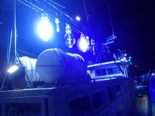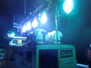 | 先週土曜日に古和浦へ行ったばかりであるが、釣果に不満を抱えたままであり、シーズンが終わってしまう前にもうちょっと釣りたいと思っていた。で、天候が良い日を選んで平日に行こうと考えた。しかし、朝から1日休むのはちょっと難しい。朝出勤して、昼から行くのならなんとかなる。ということで、半夜便のある福井のかどや丸に、また行くことにした。 前日夕方の天気予報で「曇り」、「波1m」というのを確認して予約を入れた。しかし・・・10時間後の当日になると、「夕方は雨」「波は1.5m」になっている(T_T) う〜ん、前日ですら予報とはこんなものかとがっかりであった。 しかし、今更止めるわけにはいかないし、翌日以降の天気は悪そうだし(-_-;) ということで、職場を昼前に出発し一路福井小浜へ。滋賀県辺りまでは、晴れて暑いくらいの天候だった。それが、福井県に近づくにつれて雲が厚くなっていった。しかし、現地に着いても雨は降っておらず、「ひょっとして、予報はいい方向に外れたか。」と思ったのだが、沖合はそうではなかった。 ![]() 16時に出船というので、途中の休憩なしに走ったら14時30分くらいには到着できた。自分以外にも、平日の午後に釣りをしようという釣り人がまあまあいるようで、駐車場には既に4人来ていた。とりあえず場所を取るために船に行くと、右舷の後ろが空いていたのでそこに釣り座を決めた。 15時30分に船長が到着し、15時50分くらいに来た最後の客を乗せて出発した。湾の中程に来ると波が高めだからなのか、ややゆっくりめ速度で揺られながら進んだ。ポイントまでは、50分くらい走ったが、途中から雨がポツポツと落ちてきて、ポイントに到着する頃には本降りになっていた。風も強く吹いて、雨が斜め横からたたきつける中での釣りとなった。 水深は30mで、波はやや高く雨風が強かったが潮は緩やかで、20g程度のノーズコーンシンカーでほぼ真下にエギが落ちていった。前回のように、点灯前はジグで探ってみたが反応する魚はなく、エギで探ることにする。しばらくすると、真ん中で釣っていた常連さんが1パイ釣った。これは頑張らねばと思い、お助けリグ仕掛けでしゃくってみる。 しかしイカからの反応はなく、また船が上下して穂先が安定せずアタリが取れない(-_-;) 体全体で穂先を安定させようとするが、波がますます高くなってなんともならない。 そんな、中だったが30分程度経過した頃に、何か乗った感じがした。巻き上げると新子サイズのアオリイカが釣れた。上のリグに付けた2.5号のエギに乗っていたのだが、アタリが分かったわけではなく、ステイさせた竿をちょい持ち上げたら乗ったという感じだった。 悪条件の中でも常連さんは釣っているし、自分もとりあえず釣れたので、次を釣ろうと気合いを入れ直す。1パイ釣れたのもあって、自分は船酔いモードにはならなかったが、酔ってしまった人もいた。 で、18時前に船長から移動の指示があり、波が比較的低そうな湾内へと場所がえした。 今度の水深は20m、陸地の明かりが見える辺りだった。変わって直ぐに、真後ろ(左舷の後ろ)の人が釣った。これは!と思って自分も気合いを入れ直すが、反応がない。波も雨風も最初よりはずいぶんマシになり、条件は改善したのだが、いかんせんイカの反応がない・・・(涙) でも、私がどうにもならないのとは反対に、真後ろの人は2ハイを追加していた。 う〜ん、何がダメなのかよく分からない。で、周囲の人のしゃくりを観察しながら、なるべく真似してやってみる。でも、結果が出ない。 しばらくして、また船長から移動の指示。湾内を少し移動し、水深は前と同じ20mだったが、とりあえず気合いを入れ直す。ただ、三重のティップランのように船を流すわけではなく、アンカーを打っての釣りなのでイマイチ要領がつかめない。また、明かりを焚いているのだが、イカはもちろん他の魚も集まっている様子はない。 そんな中、落としては巻きジャクリして止める。大きくワンピッチ、ワンジャークって感じで竿をあおってから止める。そんな動きをただただ虚しく繰り返した。 釣れる気もなく集中力も途絶えた頃、止めた竿をちょい横に振ったら手応えが。久しぶりのイカの手応えで、巻き始めるとドラグが滑って巻けない・・・もともとイカ釣りはドラグを緩めにするのが普通なのだが、それにしても滑りすぎ(^_^;) で、ちょい締め直して巻き始めると、まずまずの手応え。ゆっくりめに上げてくると、がっちり掛かっているのが見えたが、ちょい重そうで、ティップランの竿で抜き上げるのは厳しいかもと思い、タモで掬った。 ![]() さあ〜ここからだと思い直すが、そう簡単には事は運ばなかった。イカの密度が低いためなのだろうが、同じパターンをなぞってもどうにも結果が出せなかった。 その後、また移動し30分程でまた移動・・・というパターンで、狭い範囲ながら移動を繰り返した。移動の度に、今度こそは・・・と期待をするが