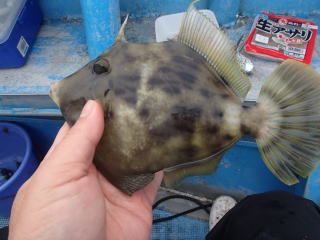 | 毎年この時期は平日の休みが取れるので、この日に休んで釣りに行くことにした。 最初、イケチャン御用達の鳥羽の人気釣り船で、ヒラメを釣ろうと思ったのだが・・・18日の夕方に電話をすると既に満席だった。しかも、21日は鯛釣りだという。 そこでヒラメ釣りは諦めた。そもそもヒラメが絶対に釣りたいわけではなく、鳥羽の人気釣り船に乗ってみたかったというのが本当のところであったし・・・行くにしてもヒラメ用の竿やら仕掛けやらを揃える必要があるし・・・ で、仕方なくシーズンも終わりに近づいたがアオリを狙おうと南伊勢の船に電話した。しかし、その日は「タイラバ」だという。う〜ん、うまくいかないものである。他船を探せばいいのだが、アオリイカは下手するとボ〜ズもあり得る感じ・・・(-_-;) まあ、あれこれ悩むうちに三重や福井まで行くのが面倒になってきた。更に、穏やかな予報だったのが、だんだん波も高く、昼前から雨も降りそうな予報になってきた。 それで、師崎からの船の釣果をあれこれ見ながら、手軽な近場のカワハギ釣りに行こうという結論になった。ウタセ五目も釣れていそうだが、小ダイをたくさん釣っても処理に困るし・・・カワハギなら鱗もないし、皮は簡単に剥げるし(^o^) ![]() 更には、何年か前に師崎からのカワハギ釣りは行ったことがあるので、一応道具は揃っているし、仕掛けも2セットくらい残っていたし。 後は船宿であるが、カワハギを主体に狙っている石川丸が目に付いたのでここにした。ここは以前に2回ほど乗ったことがあるし、他の船はフグ混じりか、フグ主体だったので。(カットウ仕掛けの準備がなかったので、フグはやめることにした。) 早朝に起きて出発というパターンだと一睡もできないことが多いので、近場とはいえ、前日に出発し現地で仮眠するといういつものように出かけた。 集合は6時だったが、4時過ぎに目が覚めた。石川丸の駐車場付近にはトイレらしいものは見当たらなく、車で近くのコンビニまで移動して済ませた。5時過ぎにスタッフが到着し、場所を取っていいと言うので左舷の一番前に決めた。 深夜から風があって、駐車場の幟がパタパタと音を立てていたが、朝になっても風は止んでいなかった。強風というわけではなかったが、穏やかな日という感じでもなかった。 6時頃に受付を済ませ、船に乗り込む。6時30分に出船と言うことだったが、実際には6時45分に出船した。ただ、港を出てゆっくりと師崎沖にまで出たものの、7時までは待たなければいけないそうで、実際に走り始めたのは7時ジャストだった。 伊良湖沖まで30分だというので、船室でくつろぎながら過ごす。エンジン音がスローになって外へ出ると、目の前に伊良湖の灯台が見える辺りだった。 エサは、冷凍ウタセをハサミで切ってちょんがけにするという師崎スタイルだった。アサリは持参または船内で販売というのを事前に聞いていたし、かつても同様だったので釣具屋で買って持参した。 最初は15mくらいのポイントで、エビのエサを付けてやってみる。浅いので底取りも簡単で、集魚板やらオモリに貼ったホロシールがヒラヒラするように竿をしゃくり上げた後、ゆらゆらと落としてみる。ちょい待ってアタリを取ろうとしたが反応はなかった。でも上げてみるとエサがきれいになくなっていた(^^;) 魚は居ると思ったので、アサリに変えてみて数投後、誘い上げると何かが乗った感じ(^o^) 巻き上げると、小型ながらカワハギが付いていた。 その後15m〜20mくらいの場所を、何度も流し変えてくれた。場所は伊良湖岬やら伊良湖港が見える辺りで、向きによっては神島が遠くに見えた。船はポイントに付け、流しながら釣り、ある程度流されるともとの位置に戻るという感じだった。 この流しでは、小型ながらも魚の反応はまずまずあり、5匹を追加した。 釣り方は竿をしゃくり上げてゆらゆらと落とした後、底から「すうーっ」と聞き合わせるという感じだった。この釣り方が良かったようで、いわゆる「たたきの釣り」やら「はわせの釣り」をやっている他の人は、あまり釣れていないようだった。 時折、いい感じのアタリと手応え!と思っているとベラが・・・ということも多々あった(^_^;) その後、少しアタリが遠のいて暇な時間がやってきて、エサも残ってくる時もあった。そこで、とりあえず釣れた6匹を締めて、食事をしながら小休憩した。 その後、9時過ぎくらいにやっといい感じのアタリがあり、また巻き上げの手応えがあり、中サイズくらいのものが釣れた。しばらくして、もう1匹釣れたが、今度は珍しくハリスを飲み込んでいた。 ![]() そこで、ハリスを交換しようと思ったのだが、部品が小さくてよく見えない(汗) 小物を狙うのはいいが、仕掛けやハリも小型で老眼が進んだ私には見にくいことこの上なかった(^^;) またD社の交換用は、ハリスに結び目が結んであるのはいいが、ハリス止めに固定するのが難しかった。穴を通して固定位置