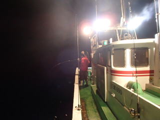 | 今回はすぎーKさんに誘われての釣行だが、3週連続の錦太幸丸である(^_^;) 先週の調査釣行を踏まえての準備だったが、西高東低の気圧配置の、いわゆる冬型の気候になり、北西の風が懸念される日となってしまった。実際には、釣り始めの海上はそれほど強風でもなく、波も高くはなかったのでよかったが・・・(^_^) ただ、海の状況は気温の変化が影響したのか思い通りにはならなかった。バケツで汲んだ海水は、まだまだ温かかったが・・・ いつものように昼過ぎに出発し、のんびりと錦をめざす。のんびりしずぎて、すぎーKさんに心配を掛けてしまったが、16時過ぎに到着した。駐車場には多くの車がいて賑わっていた。愛海丸が先に来て、何人かのお客を乗せて出て行った。 残った人を数えると我々を入れて10人で、結構賑わっていた。しばらく待つと、16時40分くらいに太幸丸がやってきた。人数を見て、船長が「予約の客がまだ来ていない。」といって電話をしていたが、どうもキャンセルの連絡がうまく伝わっていないようだった。その後、釣り座のじゃんけんをすぎーKさんが代表でしてくれて、左舷の後ろに入れることになった。 ![]() 港を出て20分くらい、いつもの辺りだったが、今日は水深50mのちょい浅場だった。 まずは、ジグで魚を探ってみる。流れが結構あり、ジグが船の底に入っていってしまうので、釣りづらかった。数投したが、反応はないのでイカ仕掛けに持ち替える。 13号の鉛スッテでやってみると、最初はジグと同様に釣りづらかったが、しばらくすると船が安定したのか流れがおさまり、普通に釣れるようになった。 アンカーが入ってすぐに点灯されたが、イカが寄っている感じはなく、イカも無反応だった。そのうち、右舷の人が30mくらいでアカイカを釣ったと船長が教えてくれたので、自分も狙ってみるが反応はない・・・(T_T) その後1時間以上経過するも、誰も釣れないので場所移動となった。最初の場所から東へ移動し、今度は70mくらいの深場だった。底は根掛かりがなく釣りやすかったが、風がやや強めに当たる場所で、急に寒く感じられ、鼻水ズルズルだった(-_-;) 場所移動してしばらくすると、周囲の人はポツポツ釣れ始めた。とはいっても、少ないイカを皆で分け合っている感じで、本当に厳しい感じだった。 船全体では、アカイカが少々、スルメが少々、今季初の大型ヤリイカが1パイという状況だった。イカの数が少なすぎて、交通事故的に偶然釣れるといういつものパターンだった。 すぎーKさんはアカイカ、ヤリイカ等を釣っていたが、私は全く・・・(>_<) このままボ〜ズかも!?(^_^;)って思い始めた20時過ぎ、45mくらいで偶然スルメが乗った。釣り始めて3時間、引きを楽しみながら、でも一方では「やっと釣れた・・・(ため息)。」って思いながら巻き上げると、足一本だけが掛かっているのが見えた。で、貴重なイカを抜き上げてバラすのが怖くて、船長にタモを取ってもらって掬ってもらった。 でも、その後の追加はなくまたヒマヒマ状態に・・・ スピニングタックルに持ち替えて、遠投して誘う方法を試したがそれも不発(-_-;) アシストを付けての遠投はイマイチだと判断し、鉛スッテ1つだけにして、遠投してカーブホールさせてみる。糸の色がイマイチよく分からなくて水深は曖昧(たぶん30mくらい)だったが、鉛スッテが落ち着いた頃に待望のアタリ! 1回では乗らなかったが、数回誘うとやっと乗った。ただ、手応えがなさすぎて半信半疑で巻き上げると小アカイカが釣れた。 でも、これも単発で続かない・・・再びもとの仕掛けに戻して虚しく誘い続ける。寒さと虚しさでやる気も失せる中、終了間際にもう1パイスルメが乗った。 ![]() 22時半に終了し、帰港した。 船全体では、今季初のヤリイカが2杯(うち1杯はすぎーKさん)釣れたものの、全体的に非常に厳しく、二桁釣った人はいなかった様だった。 太幸丸は、客が多めの日は釣れない・・・というのが私のジンクスなのだが、今日も例外ではなかった。まあ、少ないイカを大人数でシェアするのだから当たり前の論理なのだろうが・・・釣れていなくても、客が来るのは、船長の人柄が良いからなのかな(^_^) まあ、漁業ではなくて、トータルに楽しめるレジャーとして捉えれば、これもありなのかもと思った。 目次へ 一番下へ |
