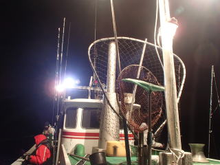 | 12月の中旬頃に、すぎーKさんから「まるよし渡船の半夜便で、アジやら青物やらが好調」との情報とともに、この日の誘いを受けた。しかし、冬場はどこも荒天の日はとんでもなく荒れるので、天候がある程度見通せるまで保留したい旨を申し出た。すると、快く「いつでもどうぞ」との返事をもらったので、年明けになり、釣行日の数日前に天候を確認して参加をお願いした。 いつも企画から手配までしていただき、また我が儘な希望をきいていただいて、ほんとうにすぎーKさんには感謝である。 事前の情報では、魚が釣れる日はイカが不調で、イカが好調の日はその逆なので、両方を狙える準備をしてくるようにということと、直前のまるよし渡船僚船の情報では、青物は望み薄でアカイカが上向きかも?ということだった。 まあ、どう展開するのかその日の状況次第なので、いろいろなタックル&仕掛けを準備し、大荷物で出かけることになった。 ![]() 当日は17時までに来るように言われたので、いつものように昼頃に出発する。撒き餌のオキアミを近所の釣具店で買い、車の中でヒーターの風を直に当てて溶かそうとしたがなかなか溶けなかった。車内を暑くしていたので、冬場なのにTシャツ1枚で運転していた(^^;) 次回同様な機会があったら、前日に買っておいて室内に放置でいいのだと思った。特に冬場は・・・ 一般道を多用しながら、16時少し前に気勢大内山のコンビニに到着する。ここで、今日同行予定のノブさんと会い、挨拶をして情報交換をする。 その後まるよし渡船に移動し、駐車場で休憩していると若船長が声を掛けてくれ、クーラーに氷を入れることと、オキアミを溶かすためにお湯に浸けるように案内された。その後、船に荷物を積み込むように言われたので、ノブさんと二人で荷物を移動させ、とりあえず船尾に置いた。 17時前にすぎーKさん、Oさん、TZさん、TBさんが到着し、挨拶をして17時過ぎに出発する。釣り座はそのまま、右舷の後ろでやらせてもらった。 夜便はいつも船長と若船長の二人体勢で、ポイントまでは20分もかからないくらいだった。アンカーが入り、水深は45m前後ということで釣り始める。すぐに点灯されたが、すぐにはイカや魚は寄らないだろうと思い、サビキ仕掛けで様子をみる。 最初40号で様子をみたが、潮の流れが結構あり60号に替えた。しかし、それでも斜めに仕掛けが入っていく状態だった。80号まで持ってはいたが、手巻きで(電動用の電源が船にはない)やるには重いので60号でやることにした。 撒き餌を置く台とかなく、竿受けも安い自前のものなのでぎこちなく釣り始める。最初胴付き仕掛けで底まで落としてみるが反応はない。そのうち、真後ろのノブさんがアカイカを釣ったのでイカ仕掛けに持ち替えてやってみる。 15号のスッテでは真横に流されるので25号にしてやったが、それでも斜めに入っていくくらいによく流れた。 ![]() イカの反応はなく、またそのうち右舷の前のTBさんが大アジを釣り上げたので、魚仕掛けに戻してやってみる。しかし、何の反応もないまま過ぎていく・・・しばらくするとTZさんもポツポツと釣り始めた。何がいけないのだろうと思うがよく分からない。ただ、これだけ流れると撒き餌はすぐに流されてしまうので、撒き餌と同調させてサビキの空バリを食わせるのは難しいのかも!?と思い、イカの短冊を付けてしばらく放置する作戦にした。すると、思惑通りに穂先にアタリがあり、巻き始めると結構いい手応え(^o^) この日最初のアジ(33cm)が釣れた。 しかし追加はなく、また暇な時間に・・・そこでテンビン仕掛けの吹き流しに替え、落としてみる。これも無反応・・・と思って巻き上げると、なんとクッションゴムから先の仕掛けがない(T_T) よく見るとフックをちゃんと締めないままであった。う〜ん、慣れない釣りをするとこんなものか(>_<) 仕方なく新たな仕掛けを取りだしてやってみる。胴付きと同様に、コマセはすぐに流れ去ると思ったので、オキアミをハリに付けてみた。数投後、コマセを撒いてからしばらく放置すると、反応があり2匹目が釣れた。 その後、同様な感じで2匹を追加した。そのうち1匹は小さくて、リリースしようかと思ったが、ハリを外してバケツの中に入れたらひっくり返ってしまったので、持ち帰ることにした。また、もう1匹はこの日最長寸の36cmだった。 21時を過ぎた頃、またイカ仕掛けに持ち替える。しばらくして、やっとアタリか?と思ったら真後ろのノブさんとオマツリしただけだった(^^;) それでもしつこく狙っていると、20mくらいで反応が(^_^) 巻き始めたらやや重いが、スルメとは違う感じだと思ったらアカイカのダブルだった。 ![]() その後3ハイを追加するが、そこでストップ。アカイカのサイズも小さいし、残り時間を狙うなら魚か・・・と思い、また魚仕掛けに持ち替える。少しの時間、重量の軽いイカ仕掛けだったので、左手の痛みも少し和らいだし(^^) で、付け餌にキビナゴを刺し
