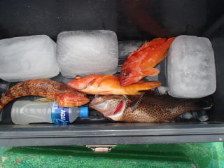 | 三重県大紀町錦 太幸丸 /釣果 オオモンハタ1(38cm)、アカハタ2(30cm)、アカエソ1(36cm) |