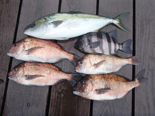 | 釣果 タイ4、ワラサ1、イシダイ1 | |