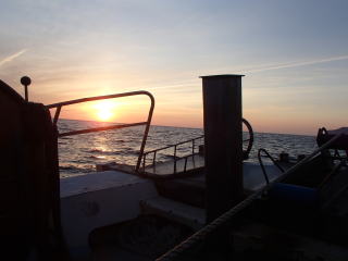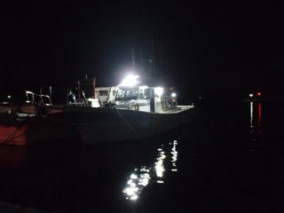 | 3月にコウイカ釣りに行ったきりで、4月になったらシーズン終わりのヤリイカ釣りに行こうと思っていた。 しかし、定年後は1年契約の再雇用で、4月からの新しい配属先が、昨年度よりも多忙なこともあり、なかなか釣りそのものに行く機会が持てなかった。土曜日にサービス残業があったり、GWは同様にしてほぼ出勤だったり。手当は少量ながら付くものの、時給に換算すると最低賃金以下だったり・・・ まあ、正規の残業扱いではなく、雇用主は「各自が好きでやっている。」というスタンスだから仕方がないのだが、「好き」じゃないのに、結局「自分がやらなければ、同僚の他の人に迷惑がかかる」という・・・いわば、無理矢理の志願という形を強制される。強行に拒否もできるが、自分のような気弱な人間には、そうやって人間関係を険悪にする勇気もないし・・・(^_^;) この業界を希望する若者が増えていかないのも頷けると思ってしまう。 ちょっと愚痴が出てしまったが・・・ 退職後は時短勤務で、どのみち混みあう休日に釣りに出かける気はないのでいいのだが、休日出勤の疲れを癒やしたり、翌週の準備で、貴重な平日休みを費やしてしまって1ヶ月半以上が過ぎてしまった。 やっと行ける時間と気力・体力と、そして天候とがマッチし、釣れ始めたケンサキイカを狙って昨年も行った福井の心友丸に予約を入れた。 月曜の夜なのに、9人とほぼ満員だった。数日前は中小が主で結構釣れた影響みたいだが、同様の他船はそれほど好調でもなく・・・全般的にケンサキイカが好調というわけではないので、あまり期待もせず、でもそこそこは釣れるのかな!?と準備した。 今回はいつものイカメタル(ベイト、スピニング)の他に、ダイワの小型電動リールをセットした竿も用意した。疲れてきたら、電動で巻き上げようという算段である(^_^;) ![]() 当日は、16時集合というので11時30分くらいに出発し、関ヶ原以降は一般道で走ったが、15時には厨の港に着いた。晴れていい天気だったのだが、結構な風が吹いていて少し波気だっていた。 波予報では0.5m~1mだったので、そんなに荒れてはいなかったが、べた凪予報と現実の状況とは違った。ただ、この風も日没後しばらくして収まり、後半は穏やかな状況だった。 久しぶりの挨拶を船長と交わしながら、16時過ぎには皆が到着したので、くじ引きで釣り座を決めた。結果、ドベくじだった私は右舷の一番前になった。 ![]() ![]() 今日のポイントは去年と同じ辺りで、港を出て10分もかからないくらいのところだった。水深は33mということだった。少し流れがあるのでスッテは20号から始めるように指示があった。これでイカが集まればとても釣りやすくていいのだが・・・現実はそう甘くはなかった。 釣り始めたのは17時前、日が西に傾いてはいたが、まだ明るくて、とりあえず探ってみるが反応はない。周囲の人も同様だった。バーチカルの生命反応は全くなく、広く探ろうと、一番前の釣り座を活かして風に糸を流されながらも遠投してみる。しかし、何回かやってみたがそれも無反応だった。去年、一番活性のあったときはこの方法で、明るいうちに12ハイも釣れたのに・・・今年はハズレの年かな(T_T)と思ってしまう。 自分にも同船者にも何の変化もなく、虚しい時間を過ごした。風がよく吹いてちょっと寒いぐらいだったので雨具をウインドブレーカーの代わりに着た。 19時ちょうどくらいに太陽が西の水平線に沈み、船のライトが点灯された。 ![]() ![]() さあ、いよいよだと思うが好転はしなかった。周囲の人も同様で、30分後くらいに後の釣り座の人が1~2ハイ上げたが、後は続かなかった。私はもちろん、生命反応を感じないまま無駄に時間を過ごしていた。 点灯後1時間以上も無反応なまま、周囲の人も同様な感じで、今日は大ハズレの日なんだと覚悟を決め、それでもせっかく来たのだからとあれこれ試そうと思う。 そこで、スピニングのタックルに持ち替え、やや遠投してみる。この頃には風も収まって、道糸が流されることもなかった。そうすると数投目にスッテの着底前に穂先が戻った。すかさずあわせるといい感じの手応えで、今日初の麦イカ(小スルメイカ)が釣れた。小さい割には手応えはそこそこあった。 更に追加しようと遠投し、船縁で最後に数回しゃくると乗って、次は新子サイズのケンサキイカが釣れた。 しかし、すぐには追加はできず、またベイトタックルに持ち替えて、ドン底を探るうちなんとかもう1パイを追加した。 水面には最初トビウオが群れていて、それがいなくなるとほとんど魚の影は見えなかった。魚も含めて生き物が寄っているという感じはしなかった。 その後は、極たま~に良型を釣る人もいて、なんとか自分もと気合いを入れるがなんともならなかった。本当に少ないイカを、皆で狙い、たま~に交通事故的に釣れるみたいな感じだった。 ベイトとスピニングのタックルを持ち替えながら、小型3ハイを追加して終了だった。