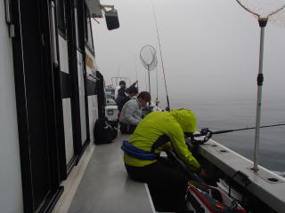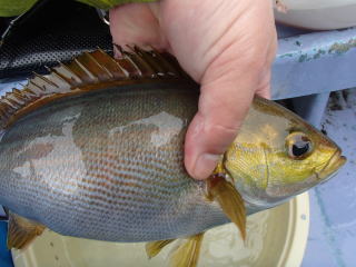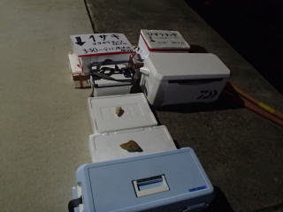 | 先週南知多出船のイサキ釣りに行ったばかりであるが、不完全燃焼だったのでダメもとでもう一回行こうと思った。 月齢は満月から半月になりかけで、イカ釣りにはまだ適時ではないのと、来週は新月なので日本海へイカ釣りに行こうと考えていたので。 自分の都合と天候を睨みながらこの日に行くことにした。ちょうど前回から1週間後である。 で、どこにしようかと考えたが、同じ船よりも他の船の方が状況も変わっていいかもとの思いから、何度か乗船した事のある大進丸に行くことにした。 HPをあれこれ見ていると、大進丸はイサキがあまり釣れていないようで、その分大アジが釣れているのだが、逆にそれを見てイサキ狙いの人は来ないかもとも考えたのもある。 そのことに関して予約時の電話で聞くと、「イサキがぽつりぽつりとしか釣れなくて、釣り座によってはボ~ズの人もいるのでお土産になるようにアジを狙っている。」とのことだだった。 それならそれもいいかと思い、行く決心をする。 いつものように前日に出発し、行き慣れた道を走って日付が変わる少し前に現地に着いた。 ここ大進丸は、テントの中の船の略図に先逆順に名前を記入して、釣り座が決まる方式なのだが、行ったときには既に後ろから順に7~8人分は埋まっており、自分は右舷の後ろから4番目(真ん中からやや後ろ)になった。 予約時の電話ではいつもは2隻体制と言っていたが、この日はそこまで予約がなかったようで第二十一大進丸だけのようであった。 大型船ではあるが、それでも18人は多いなというのが正直な感じだった。 ![]() ![]() まあ大山沖まで距離があるので、燃料代の高騰もあって仕方がないのだろう。 乗船料金は先週の船よりも千円高いし、氷も有料であるが、まあ釣れたらいいかなという期待を持って釣り座に荷物を置いて、後は船室で寝ていた。 4時30分に出港し、大山沖まで約1時間だった。霧の深い日で、暑い太陽が照り付けないのはよかった。雨に近い天候なので魚の活性を期待したのだが、それは逆で激渋だった。 帰宅後に他船のHPを見てもどこも同じだったみたいで、今日も外れの日だったようである。 ![]() 5時30分過ぎに釣り始める。水深は43mで38m付近の棚を狙うように指示があった。 しかし、周囲の人にも反応はなく、時間が無駄に過ぎていった。幸いなのは、混んでいる割にはオマツリが少なく、その点ではストレスは少なかった。 コマセを詰めて38mに落としてを繰り返すだけの時間が過ぎていく中、6時30分頃に待望のアタリ!ちょうど後ろの人がオマツリだったので、そのオマツリに巻き込まれたか?と思ったのだがそうでもなさそう。 中乗りの兄ちゃんに、「魚だから巻いて」と言われて巻き始めるとそこそこの手ごたえ(^^)途中ドラグが滑るので締めながら上がってくると、中乗りさんがタモで掬ってくれてイサキが釣れた。 37cmの良型で、手ごたえも良好、ボ~ズを逃れて気分も上々だった。 この日は出船が1隻だけだったせいもあり、中乗りの若者が複数いて、オマツリの処理からタモ入れ、魚の締めなどサービスは良かった。 しかし、魚からの反応はそれだけで、周囲の人も釣っている感じではなかった。なので、自分の技量というよりは、たまたま釣れたという運に感謝した。 その後もやはり反応がないので、大移動することになった。 今度は水深80m近い場所で、60m付近の棚を狙うように指示があった。ここでも低調で、しばらくして周囲の人が1~2匹釣った。自分は釣れないなと思っていたら、7時30分頃にやっとアタリがあり、そこそこの手ごたえをゆっくり巻き上げて37cmのアジと極小サクラダイが釣れた。 ![]() ![]() その後はまたアタリもなくなり、ヒマヒマ状態で、コマセを詰めて投入の繰り返し、時折オマツリで中乗りさんにほどいてもらうことの繰り返しだった。 その間、船長は何度も船を立て直してくれるが、どうにもならなかった。周囲も同様で、誰かが大釣りしているという感じではなかった。 終盤、また水深43mのポイントに戻って38m付近の棚を探るも、やはり無反応だった。一度、落としていく最中に手ごたえがあると思って巻くと、予想通りマルソーダで、他の人とオマツリしながら上がってきて、中乗りさんにほどいてもらった。 最後1時間程度は、水深32mで指示棚27mというアジのポイントに移動した。何投目かに一度明確なアタリがあり巻き上げたのだが、痛恨のハリ外れ(泣) その直後にまたアタリがあったと思ったら、他の人とのオマツリだった。中乗りさんがほどいてくれたが、ハリが1本切れて戻ってきたし、コマセもちょうどなくなり・・・船長から「あと10分」というアナウンスがあって、片づけることにした。 12時30分くらいに沖上がりし、船室で寝て過ごすうちに帰港した。早朝出船でも、往復は船室で寝て過ごせるのはありがたい。おかげで、帰路の運転も眠くならずにすむ。 イサキは先週同様、半身を刺身にして残りは塩焼きにした、アジも同じようにしたが