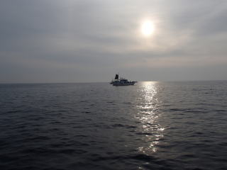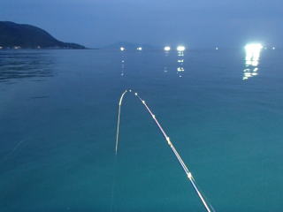 | 前回イカ釣りに行った後、満月の週はどこへも行かずに過ごした。新月に向かって月が小さくなるので、どこかへ行こうと思っていたら、左上の歯の治療期間中に右上の歯の詰め物が急に取れてしまい、歯科に何回も通うことになってしまった。満足に噛めないこともあり、すぐには行く気にはなれなかった。。 また21日には、以前から誘われていた海上釣り堀レインボーの釣り会があったので、その準備と後始末と、前述の歯科通院とで、この日にやっと行けることになった。 天気予報を見ると、猛暑の予報だが波は穏やかな様子。そこで、いつもの越前町の心友丸の船長に電話をした。すると、29日も30日も10人以上の予約が入っていることと、7月1日から3日間休みにするというので、少し考えるといって予約はしなかった。 釣果は大事だが、混み合う船で釣るのは避けたいというのも選択時の優先度が高いので他の船を探した。 小浜方面は釣れても1ケタくらいだし、水深も深いし(80m)、なるべくなら避けたい。 そこで以前(10年以上前)に何回か行ったことのある越前町の第二日昭丸に行こうと考えた。以前と変わって1隻体制になったようだが、大型船に最大12名までというので、満席でもなんとかるだろうと思ってのことである。釣果の方はイマイチの日があるようだが、小浜に行くよりはよさそうだし・・・ 電話をするとおかみさんが出て、予約は大丈夫であることと、17時30分に来るように言われた。 当日は12時30分ごろに出発し、いつものように関ケ原からは一般道を走って、16時過ぎくらいには宿港に着いた。一昨日くらいから猛暑日の連続で、車の車外温度は最大37℃を示していた。 宿の港は以前の通りであるが、第二日昭丸が見当たらない?そこで、ゆっくり探しながら行くと、一番北に停泊していた。 ![]() ![]() 船の前に車を停めて、やや西に傾いた日差しを自分の車の陰でやり過ごしながら待つと、まずは外国人の若者が2人来て準備を始めた。 その時になってライフベストを忘れたことに気が付き、そのスタッフに言って貸してもらった。オレンジ色のよくある型のものではなく、腰に装着するベルトスタイルのダイワのものを貸してくれた。 17時少し前におかみさんが来て、乗船名簿に記入後、乗船料を払った。一応10年以上前に使っていたスタンプカードを出すと、「これでいいですよ。今日の分を押しましょう、」と言ってくれた。また、お土産といって冷凍のハタハタの10匹入りをくれた。 そういえば、10年前にも冷凍ハタハタ(冬場に取れ、保存してあったもの)をお土産にもらったことを思い出した。その時はイカが全然釣れなくて、せめてものお土産にともらったのである。とすると、今日は釣れないのか(^^: 17時過ぎに船長が来て、釣り座を割り振ってくれた。ここは、当日の受付順に船長から希望を聞かれて決める方式である。 今日の客は4人で、2人のペアが右舷になり、私は左舷の真ん中か後ろの選択だったので、左舷の後ろを希望した。もう一人は残った左舷の中央になった。 一番後ろの釣り座で遠投もしやすいし、なにより大型船に4人なのでゆったりとしていて、この状況で釣れることに感謝した。 たった4人ではもったいないので、大型船の空いたスペースは船長とスタッフの若者が竿を出していた。 17時30分に出港し、港を出て北側に少し走った所にアンカーが入った。港からほんの10数分で、目の前に陸地が見える辺りであった。 ![]() ![]() 船長からは水深37mであることと、鉛は15号で大丈夫であることのアナウンスがあった。 明るいうちは望み薄なのだが、一応タックルの確認も含めて底まで落として探ってみる。しかし、反応はなく、スピニングで一つスッテを遠投してみるが、これも無反応であった。海上は陸上よりはマシだったが、まだまだ暑く、また日差しを帽子で避けながら時間を過ごした。 19時過ぎにやっと日が沈み、しばらくして点灯された。 さあ!と意気込んで底付近を探っていたら、19時30分頃に最初の1パイが釣れた。さほど大きくはないが、なんとか手ごたえが分かったくらいだった。次をと思って即座に落とすと34m付近で止まった。あれ?船が動いて底が浅くなったかと思って巻き上げると、また小型が釣れた。 その後、ぽつりぽつりと小型が釣れた。 シーズンはもう新子サイズなのか・・・と溜息をつきながら、まあ釣れたからいいかと思う。 巻き上げが面倒だし、電動なら自動巻き上げもできるので、早々に電動メタルに変更した。しかし、この選択が重大なトラブルを引き起こしてしまった。 というのも、いつものようにやっていたのだが、PEが穂先に絡んだのか、時折PEに付いてくるクラゲの破片様が絡んだのか、穂先を破損してしまった(><) う~ん、電動メタルにも慣れてきた頃だと思っていたのに・・・(涙) 季節によってPEに付くゴミに気を付けなければならないことを学んだ。 仕方なく、もとの手巻きに持ち替えて釣りを再開する。気分は落ち込んだが、イカ