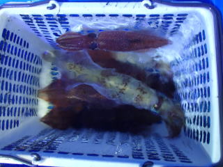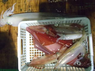 | 福井小浜市堅海 こみなみ丸 /釣果 ケンサキイカ9(小2、中3、大4胴長30cm~34cm)、スルメイカ7 |